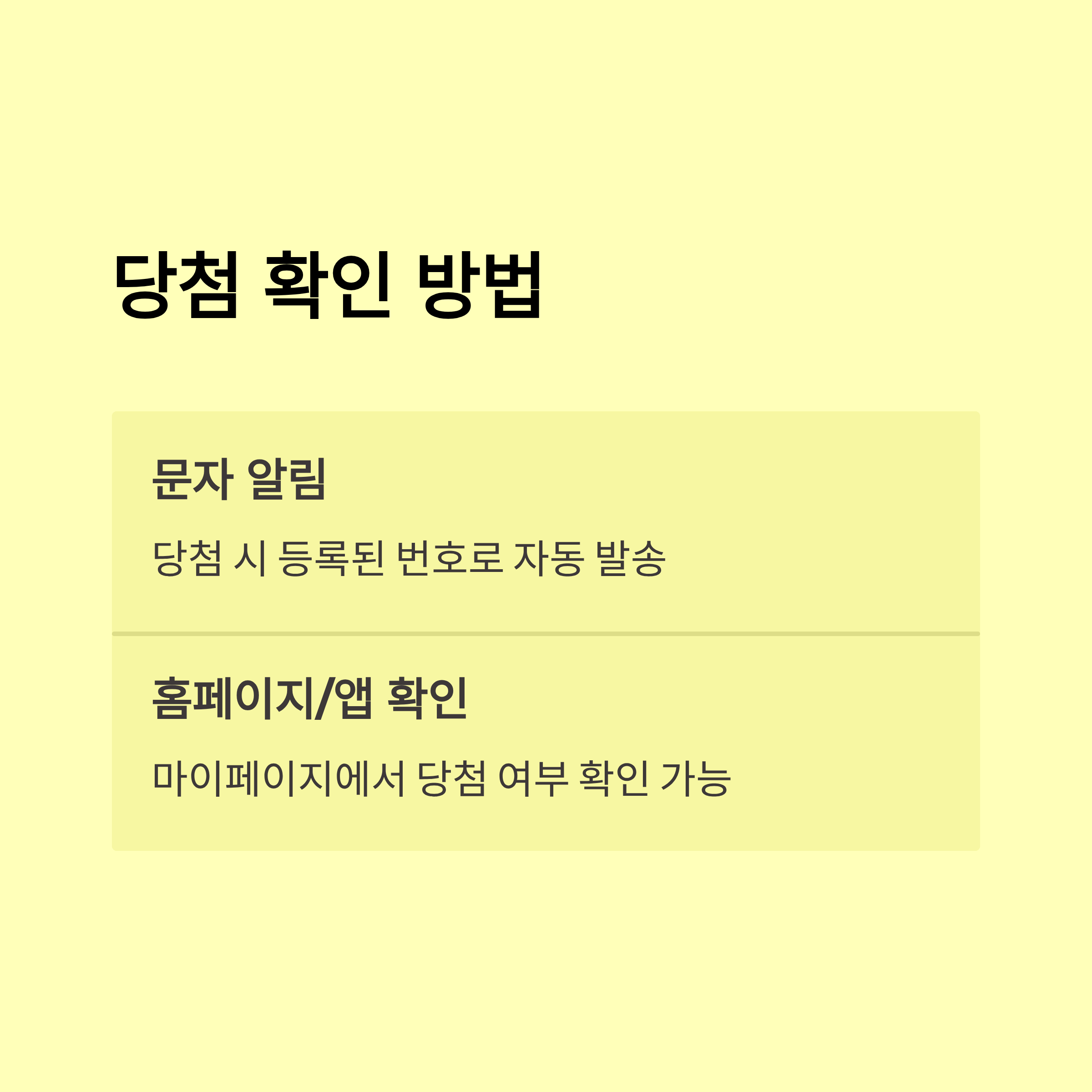 – 온라인이 가장 편리하지만, 오프라인 방문도 충분히 가능합니다. - Q. 신청 후 당첨 여부 확인 기간은?