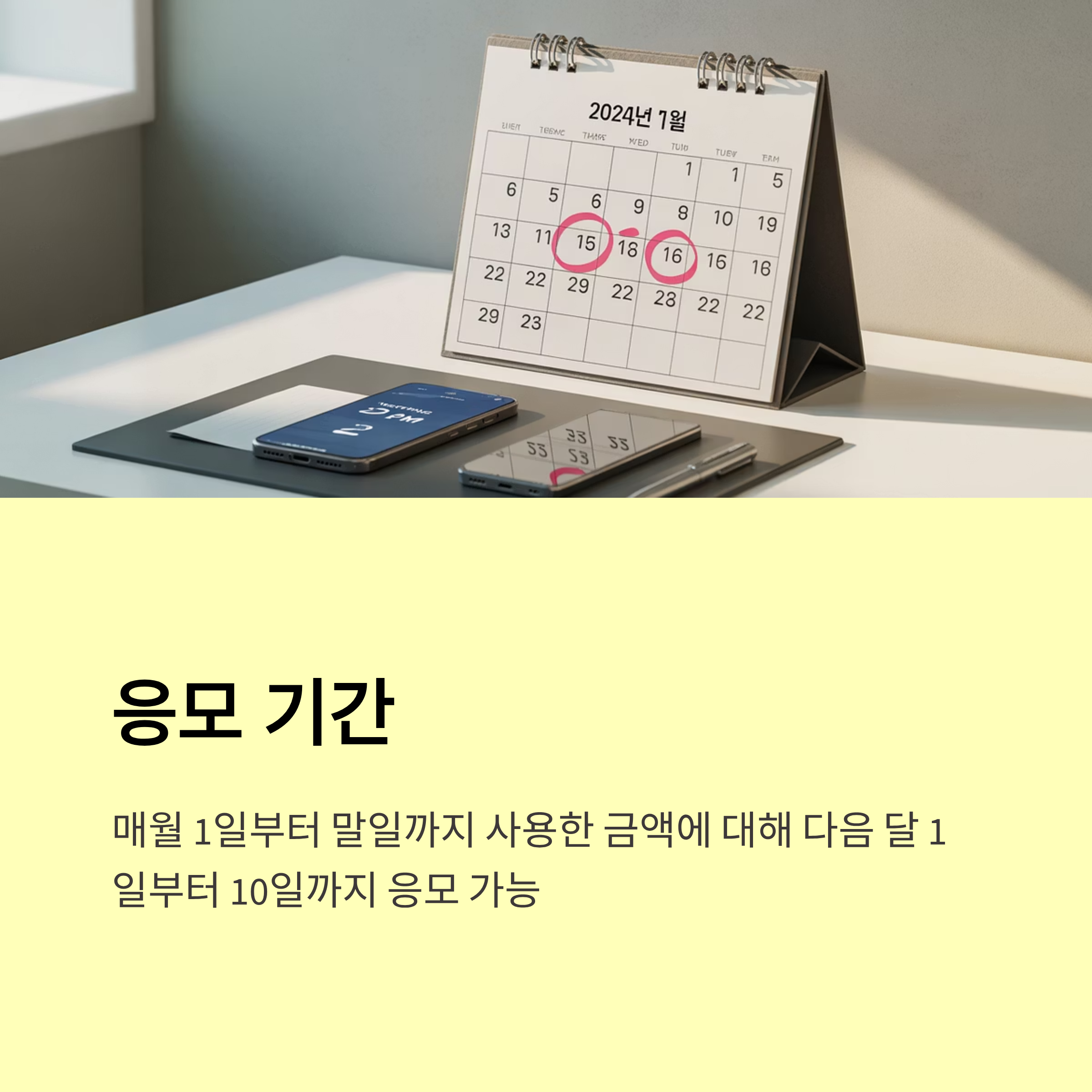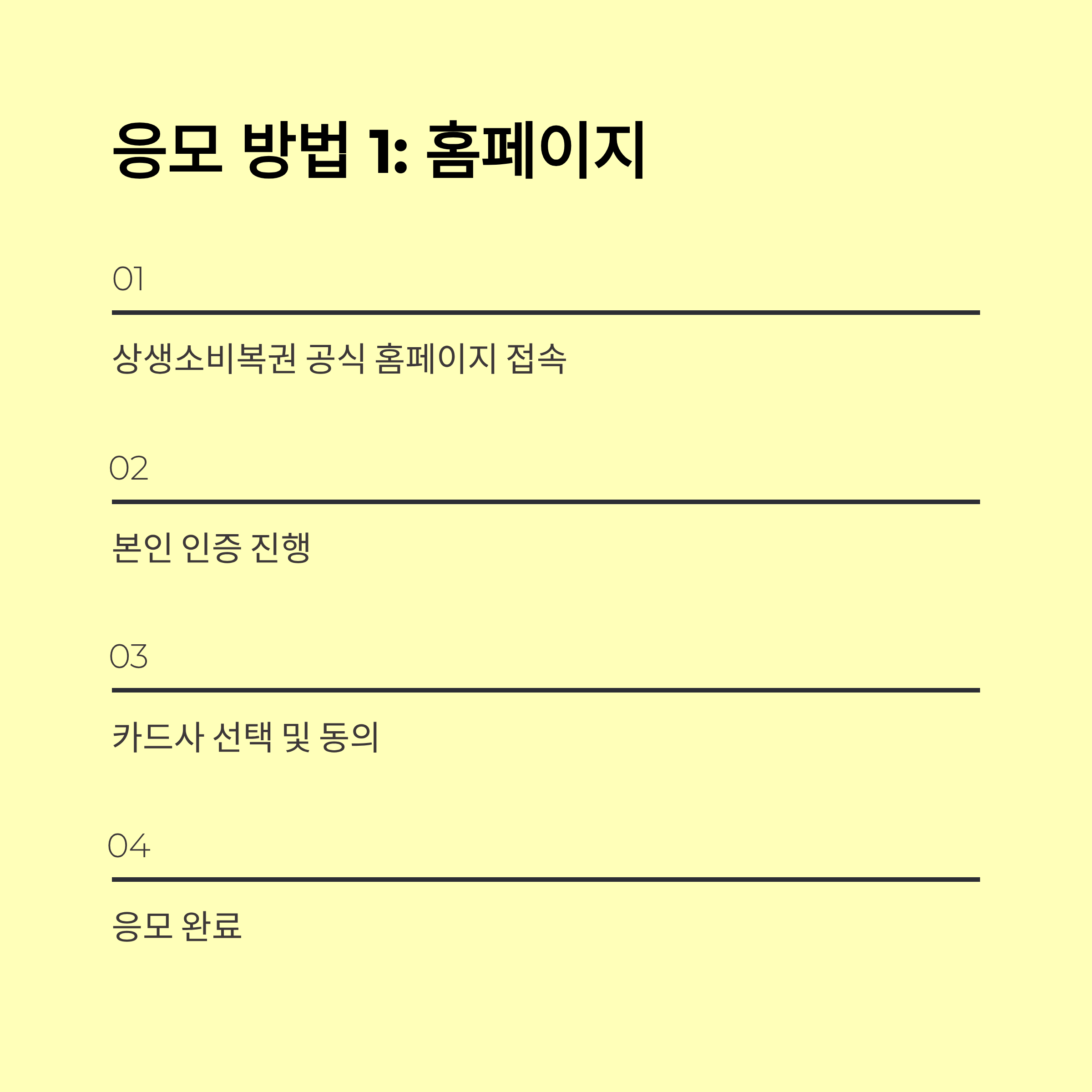 - 응모는 주로 온라인 및 오프라인 두 채널 모두에서 가능, 본인 인증과 소비 증빙 서류 중요.