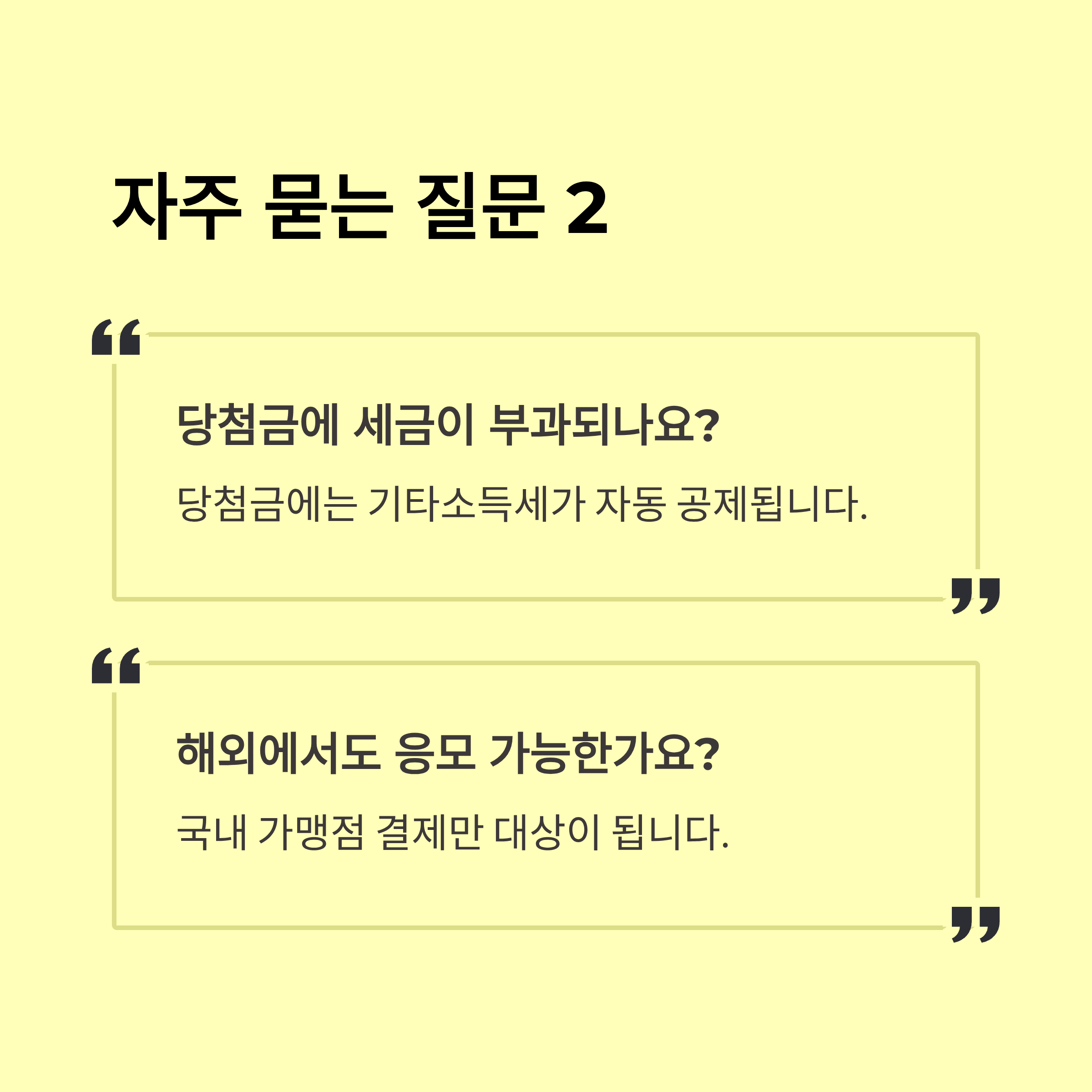 - 당첨자 선정은 매출 데이터, 구매 실적, 응모 시기 등 다양한 시점과 조건에 근거해 공정하게 진행.
