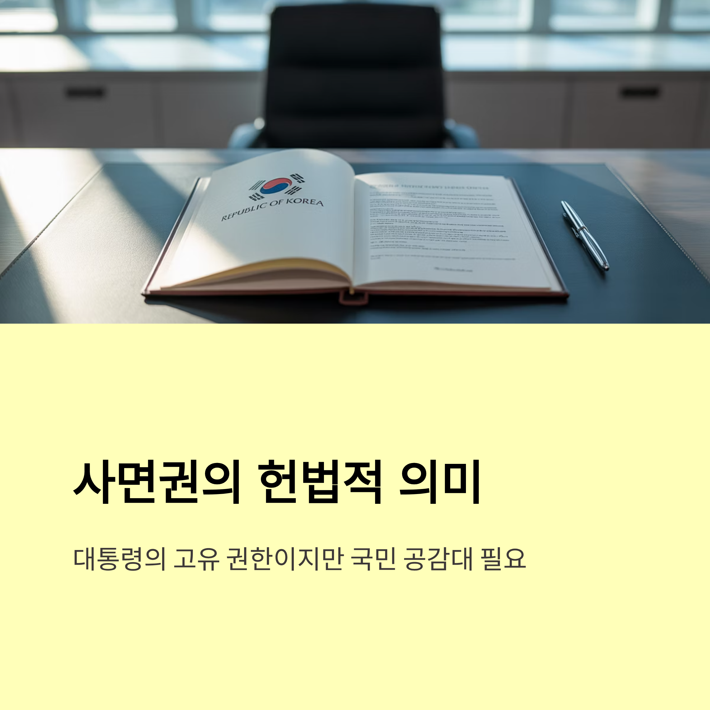 - 대통령은 국무회의 심의와 의결을 거쳐 독자 권한으로 최종 사면권을 행사하며, 이는 헌정 상 확고한 대통령 권한입니다.