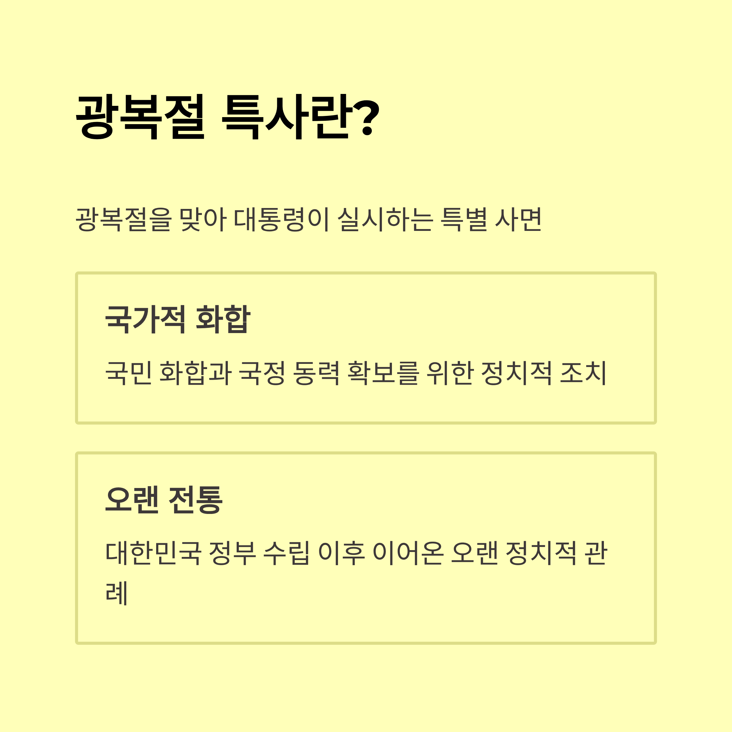 - 이번 광복절 특별사면은 정부 출범 후 처음 시행되는 대규모 사면으로서, 사회적 관심과 정치적 파장이 큰 사안입니다.
