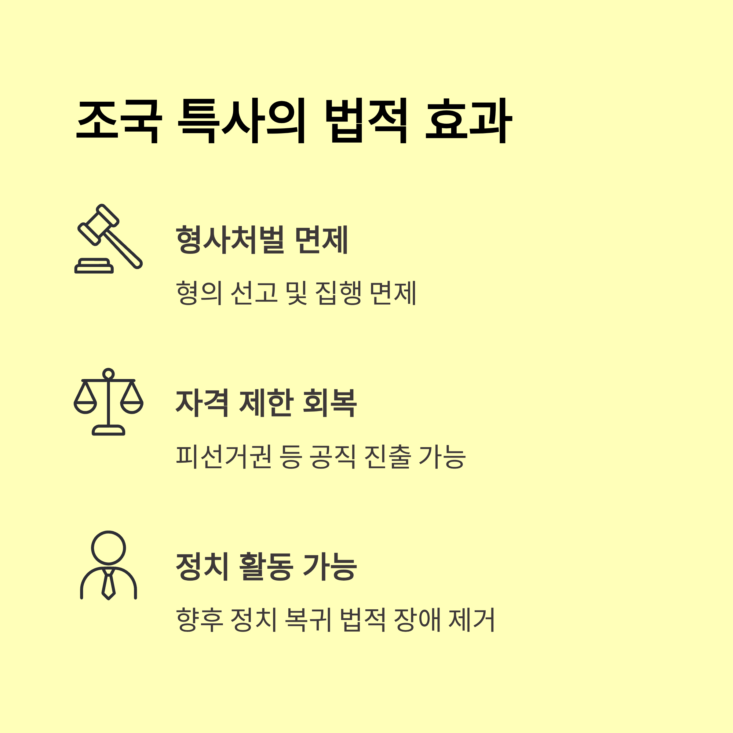 Q2. 조국 및 기타 인사들의 사면은 동종 혐의자 전체에 대한 면죄부인가요?