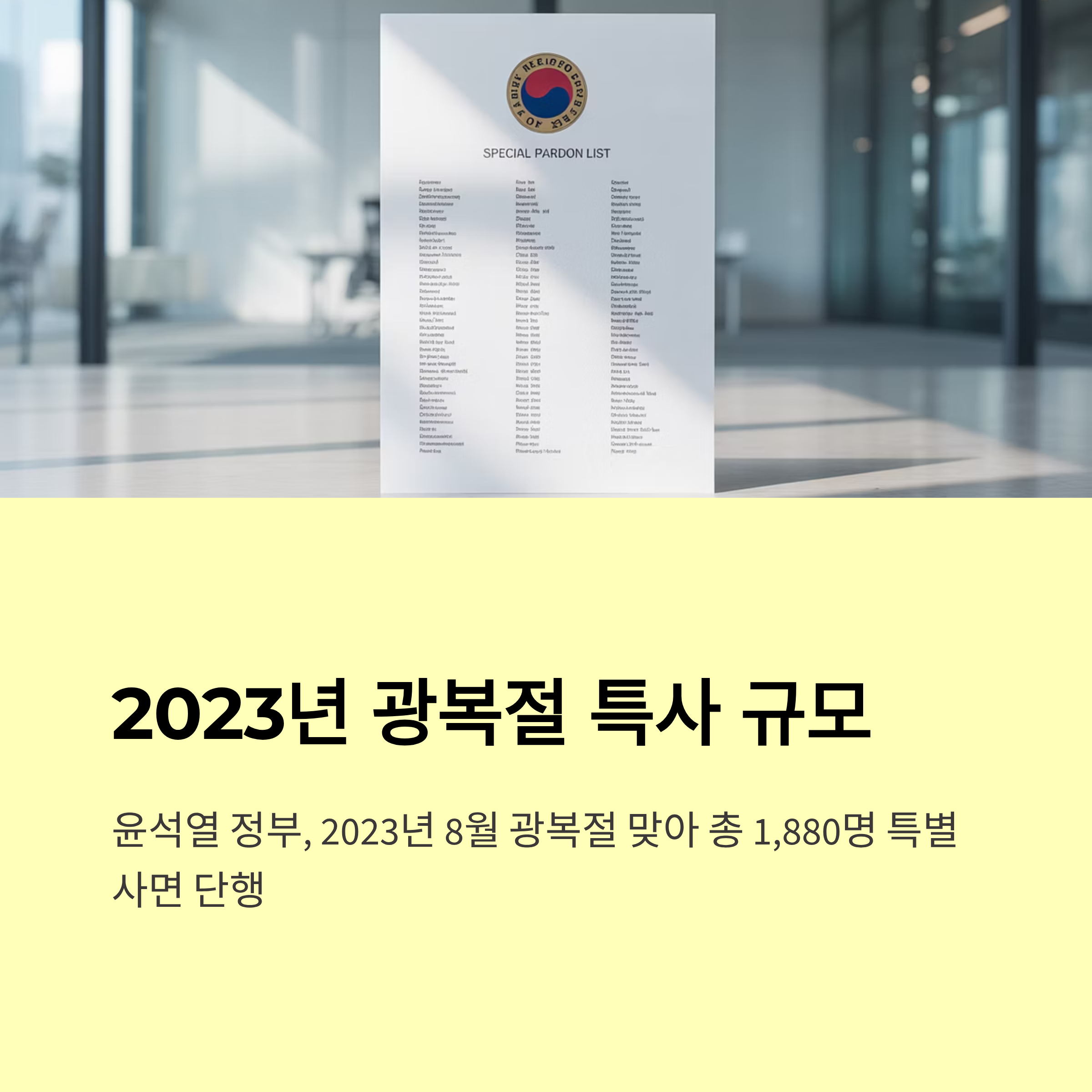 - 22년 만에 이뤄지는 정부 출범 후 첫 특별사면이며, 같은 날 광복절 특별사면 명단이 공식 발표됩니다.