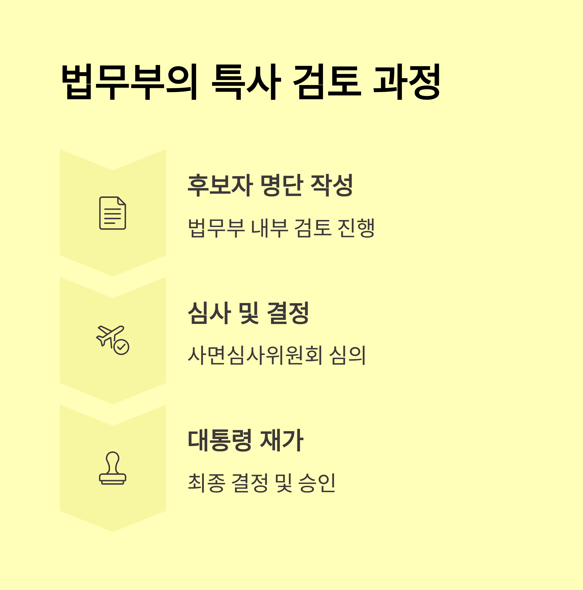 - 법무부 장관 정성호가 심사위원회 건의 후 대통령에게 상신, 8월 12일 국무회의 거쳐 최종 확정 예정