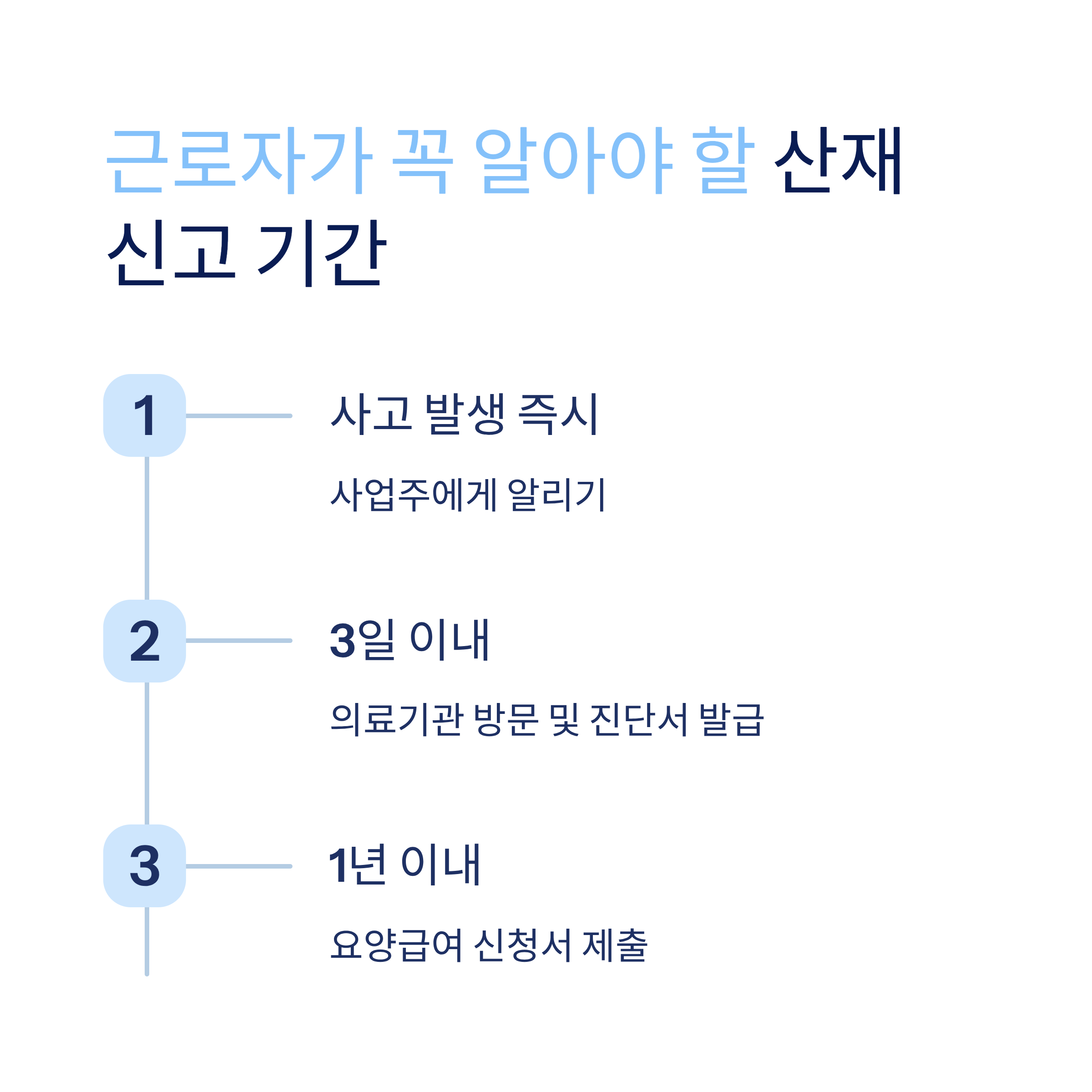 신고기한을 지키면 불필요한 분쟁을 줄이고, 치료와 보상을 더 빠르게 받을 수 있어요. ⏳