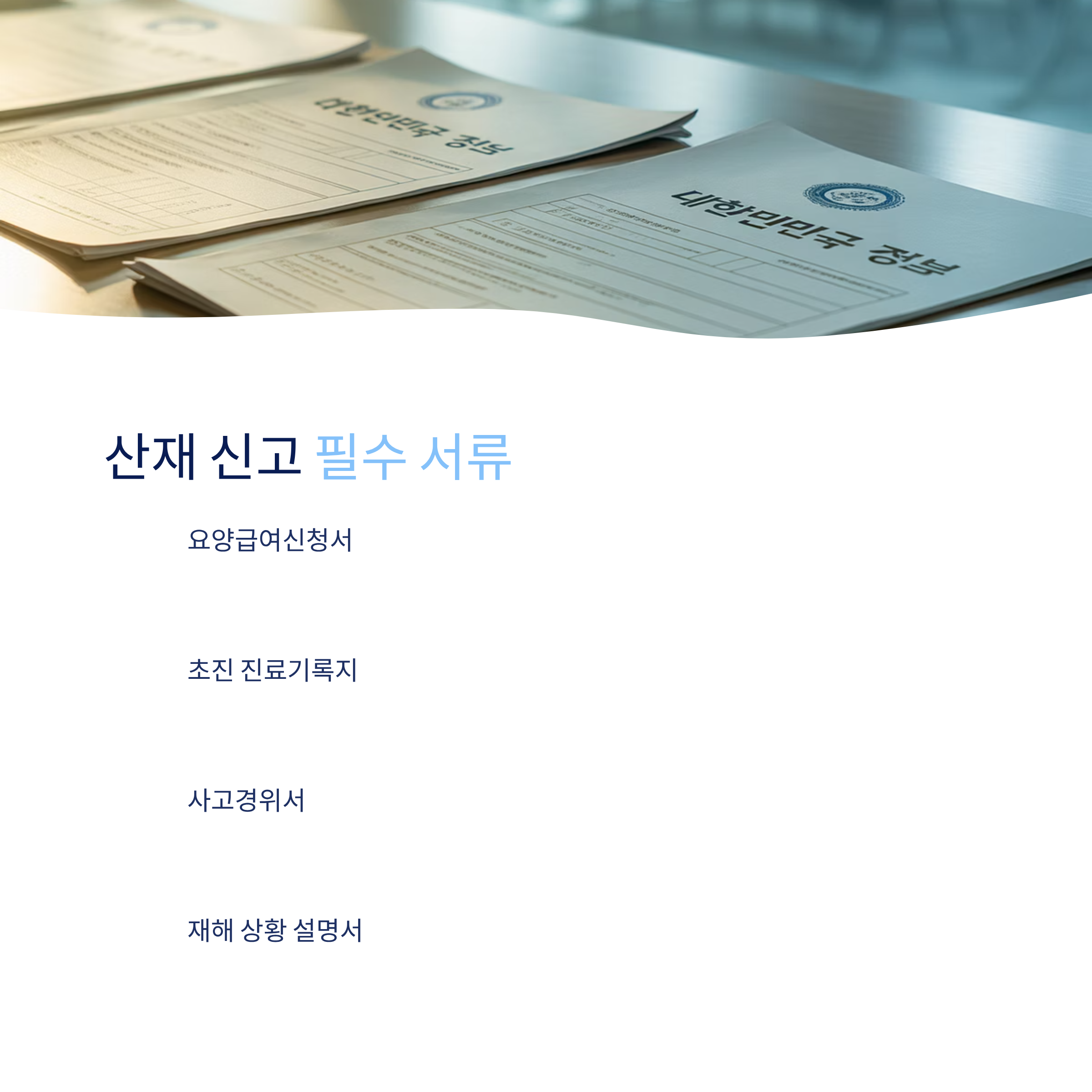 산재사고 신고 시 제출해야 하는 기본 서류는 다음과 같아요. ‘요양급여신청서’는 필수이며, 진단서, 사고경위서, 재해조사표 등이 필요할 수 있어요.