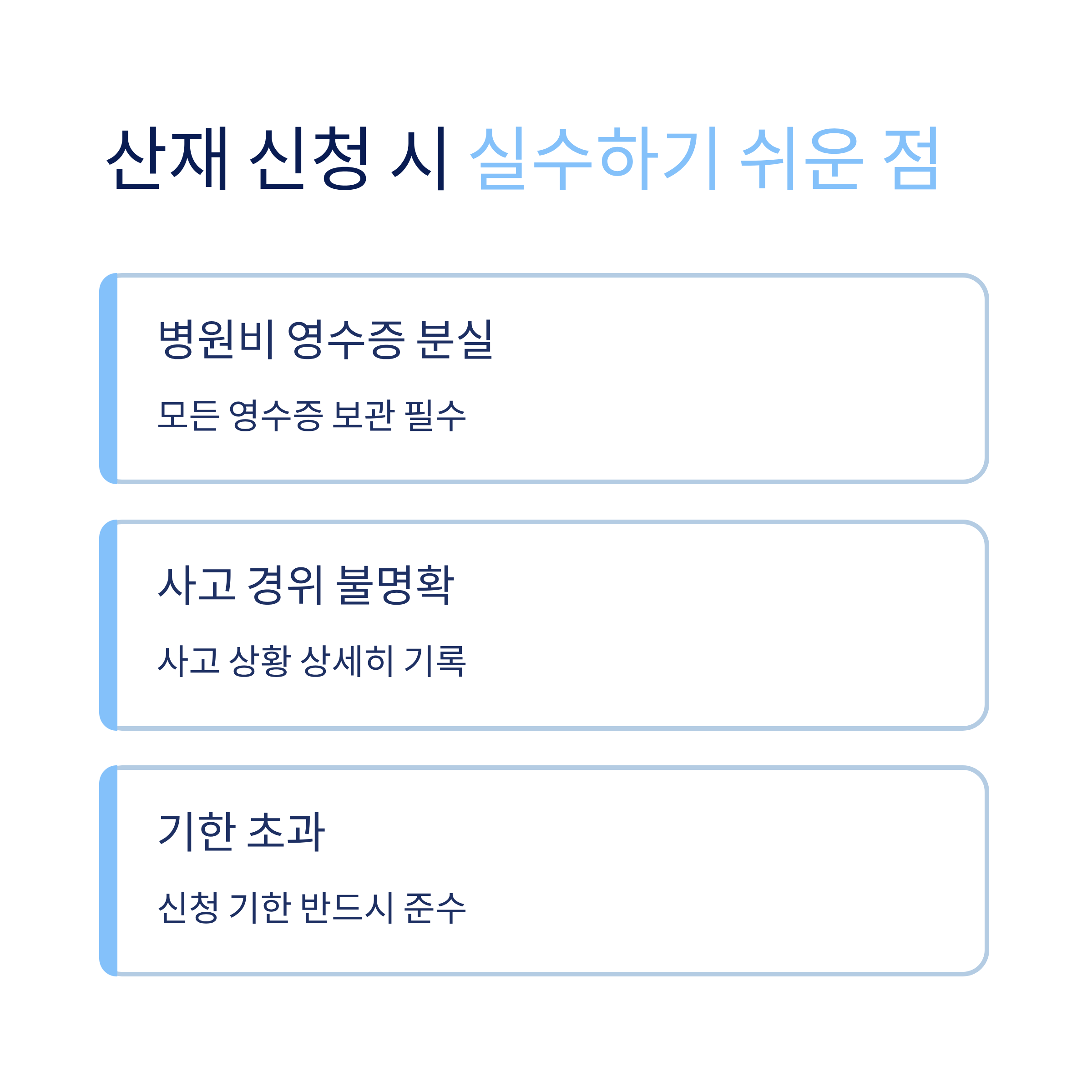 유의사항만 잘 지켜도 산재 승인 가능성이 높아져요. 💡