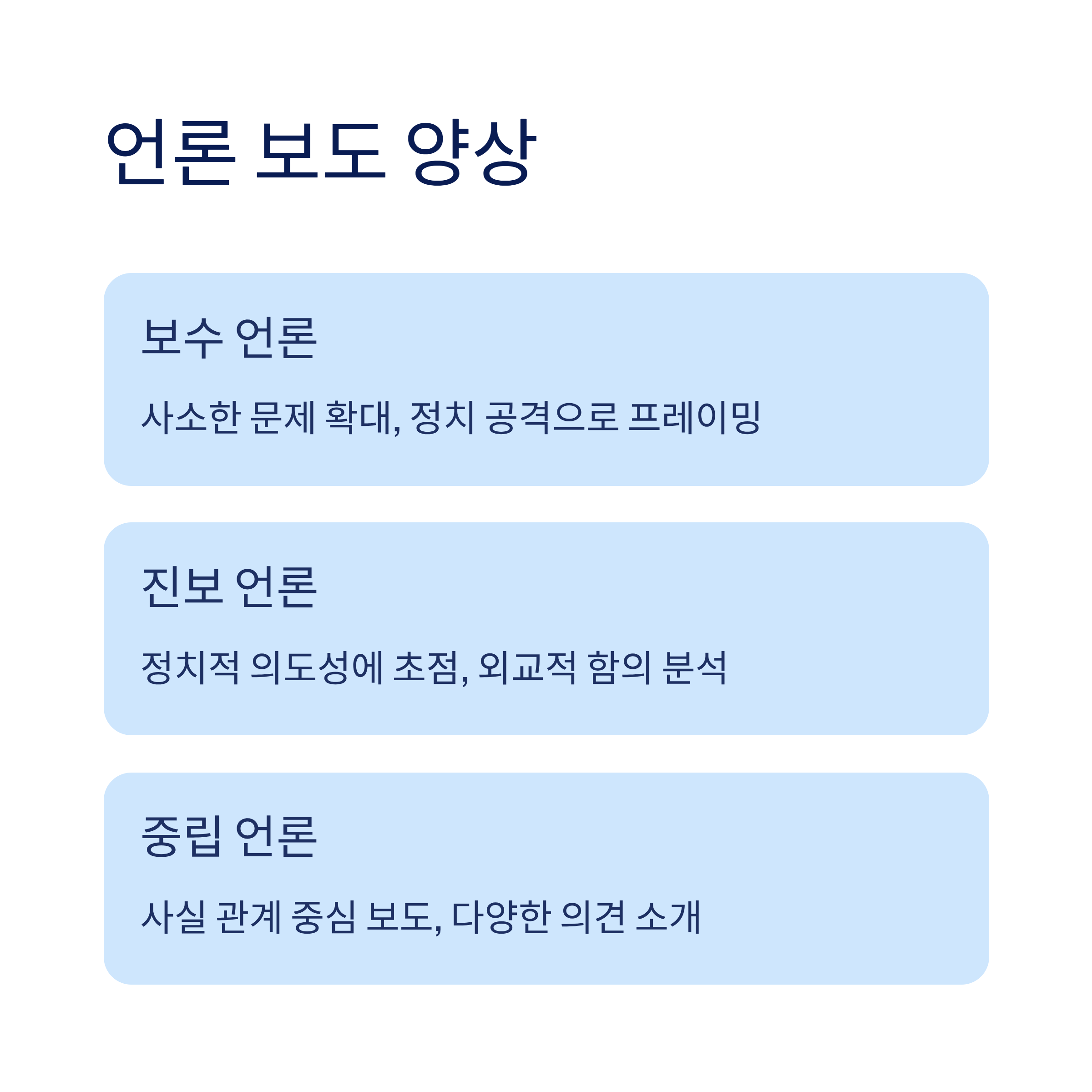 - 언론·플랫폼 구조: 속보·클립 단위 확산 구조에서 초기 정보의 오류가 쉽게 고착됩니다. 2차·3차 인용이 누적되면 정정 보도가 나와도 인식 수정이 더디게 진행됩니다.