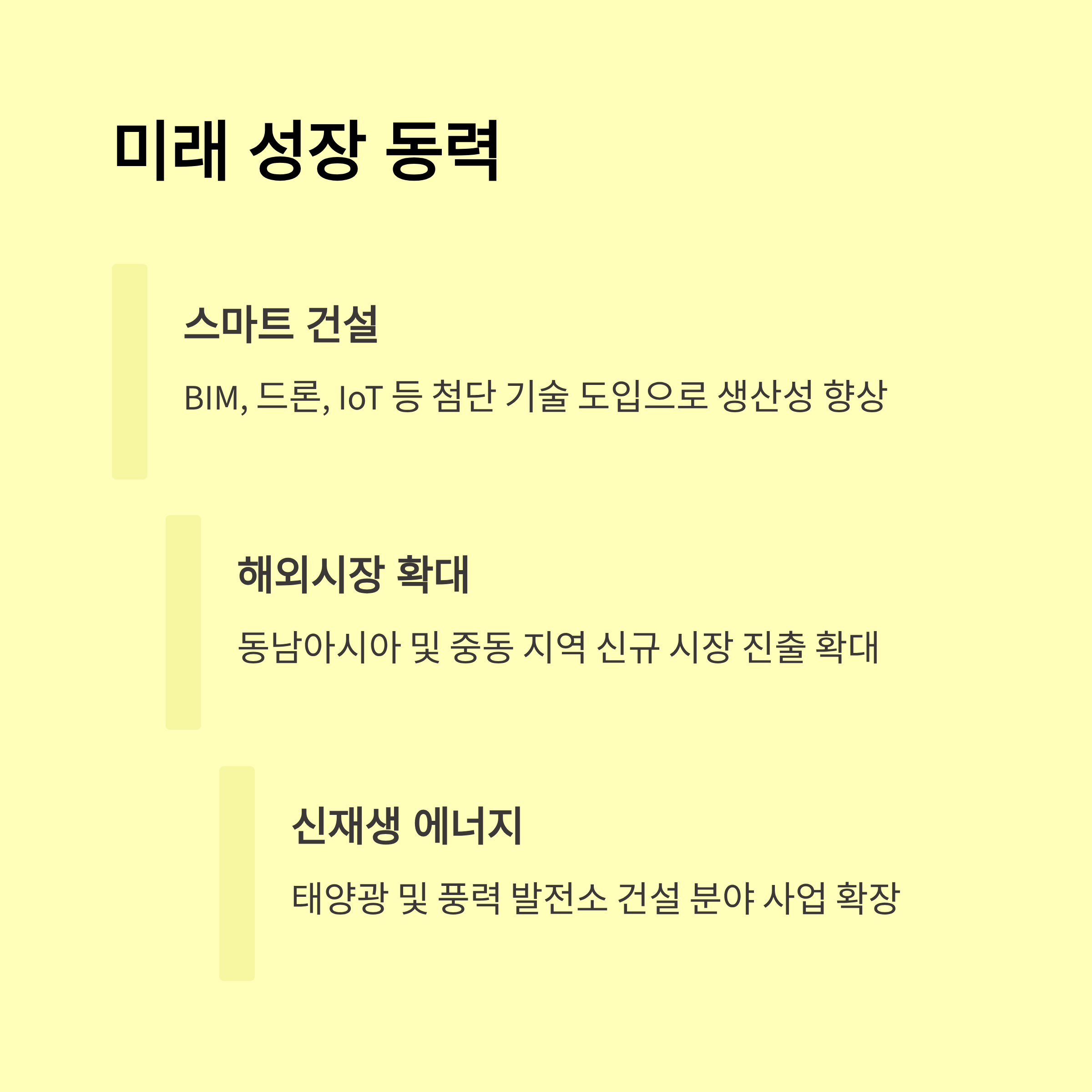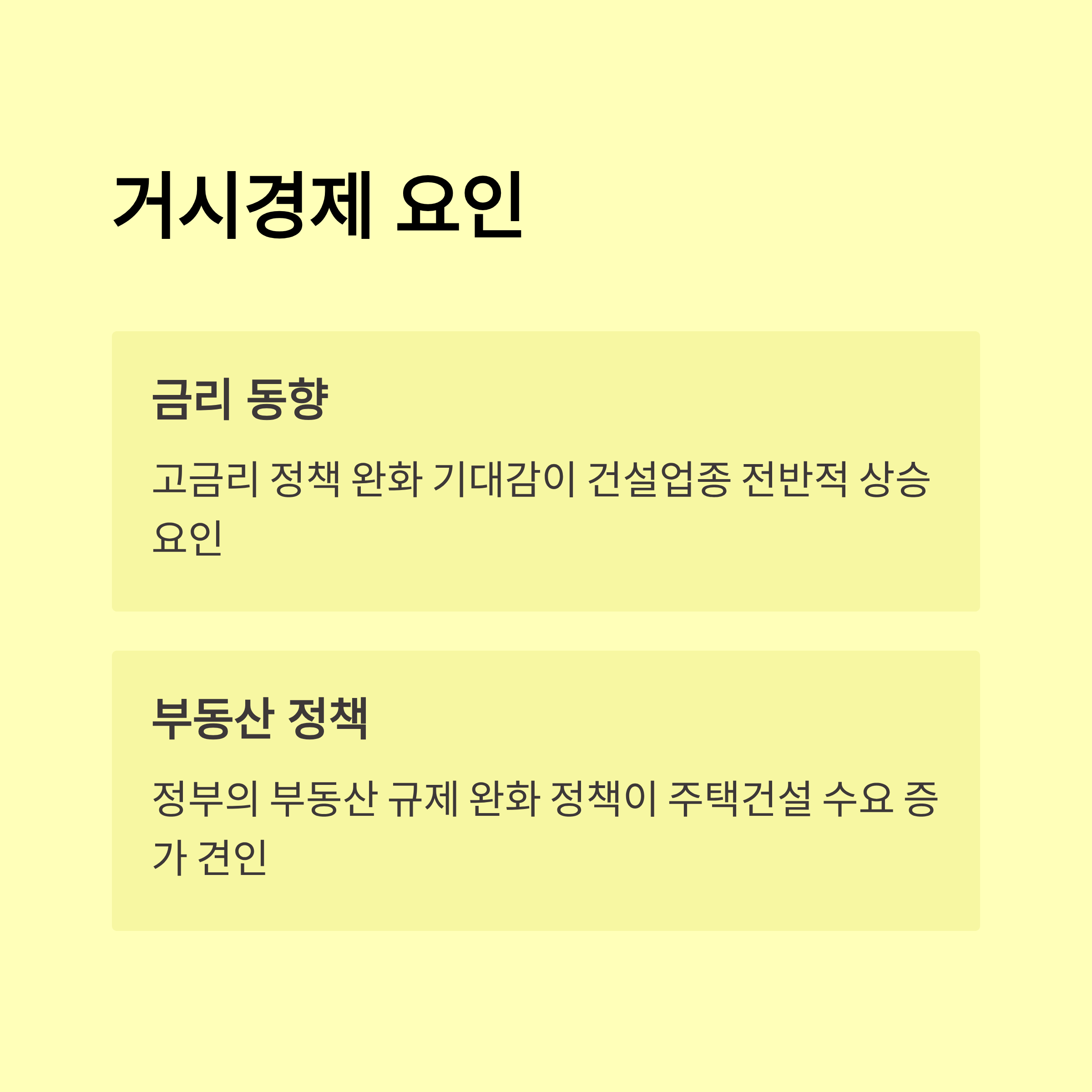 - 금리·건설 자금 부담, 규제·수주 리스크 등 산업 내 구조적 변수 상존