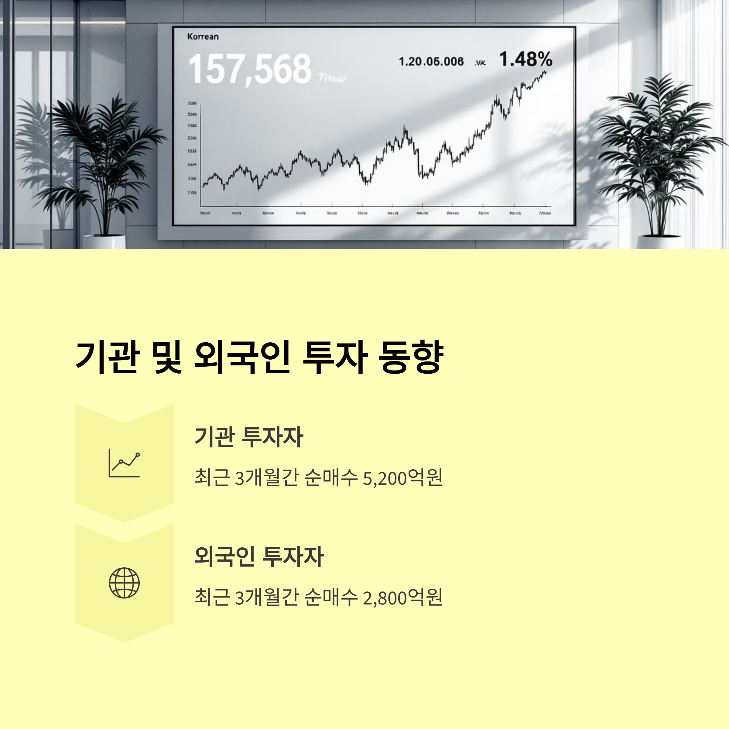 - 기관·외국인 보유비율: 주요 투자자 비중, 대규모 거래 기준