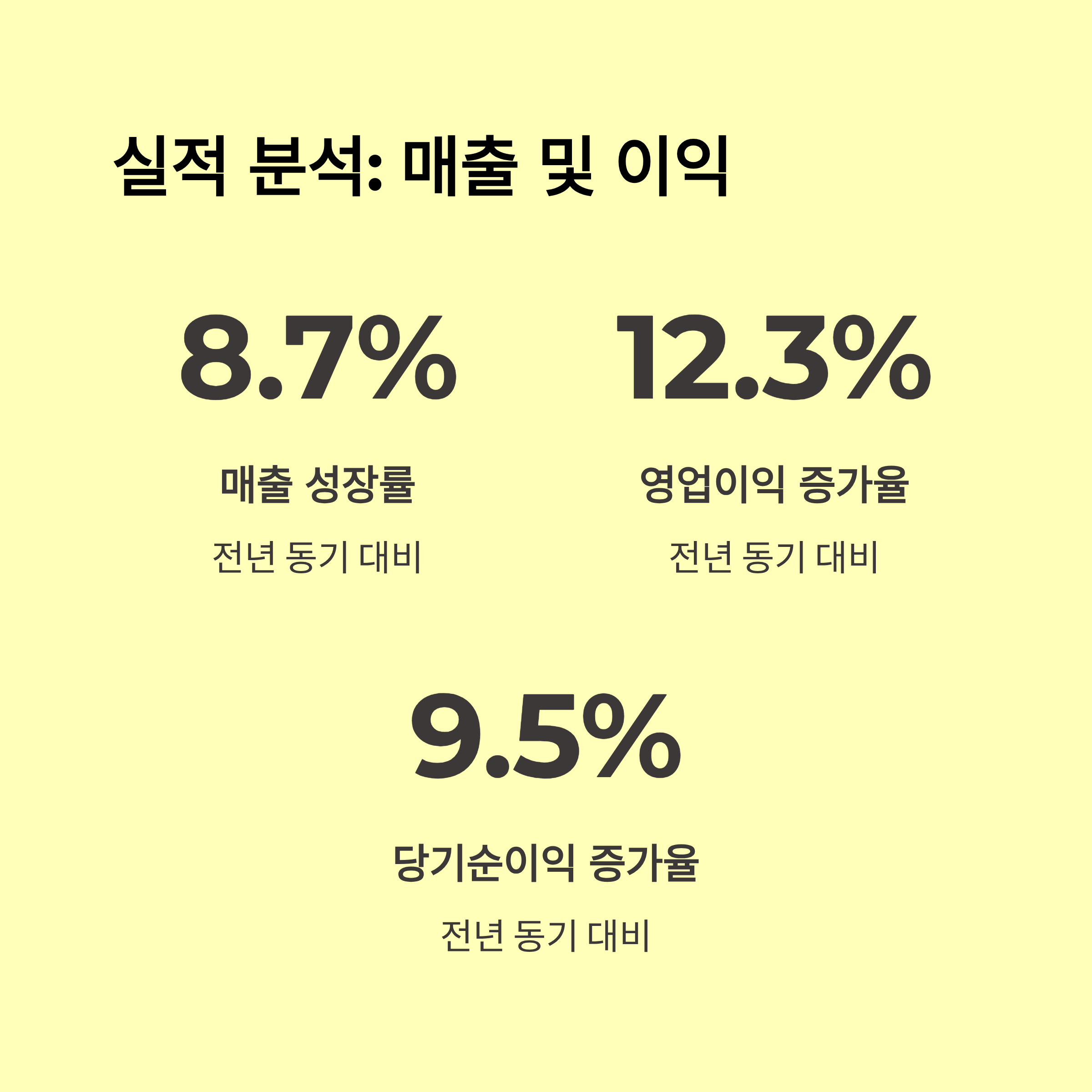 - 부채비율: 재무구조 건전성 지표, 낮을수록 안정