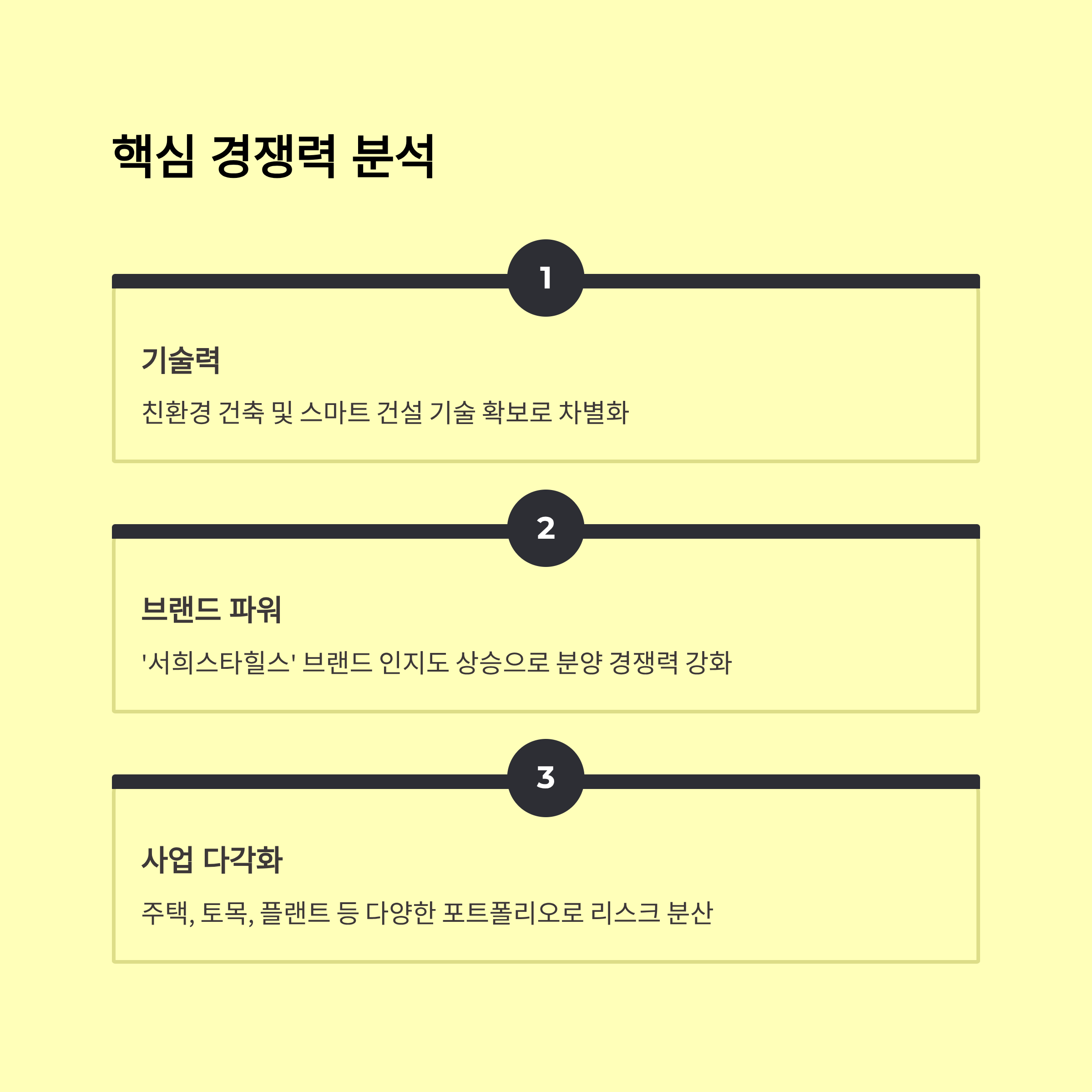 - 최근 2년간 분양 확대: '서희스타힐스', '도시개발형 민자사업' 등 신규 사업지에서 안정적 공정 진척