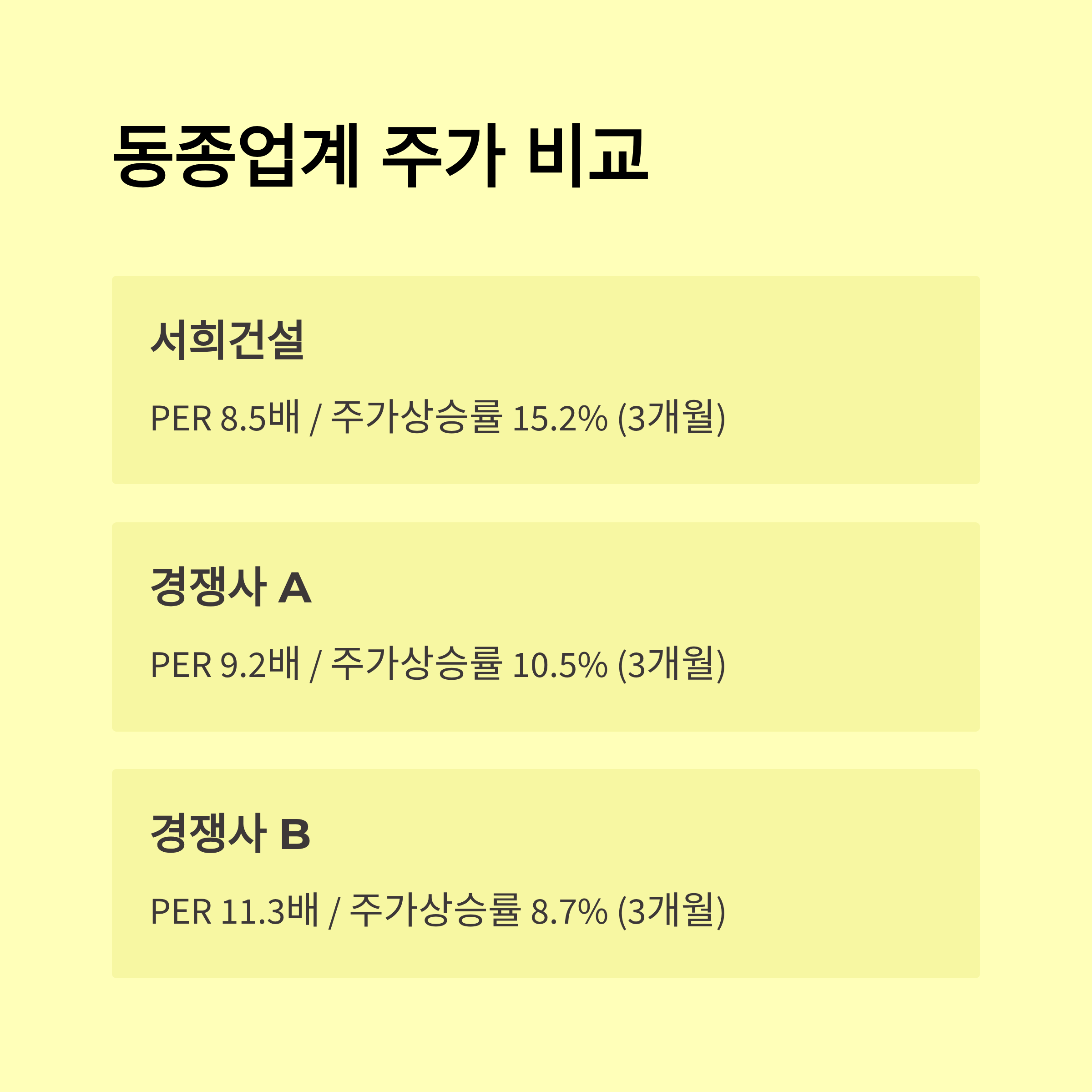 건설업분석 및 분양시장·실적 동향은 네이버금융/뉴스에서 확인 가능합니다. 네이버금융 서희건설 주가