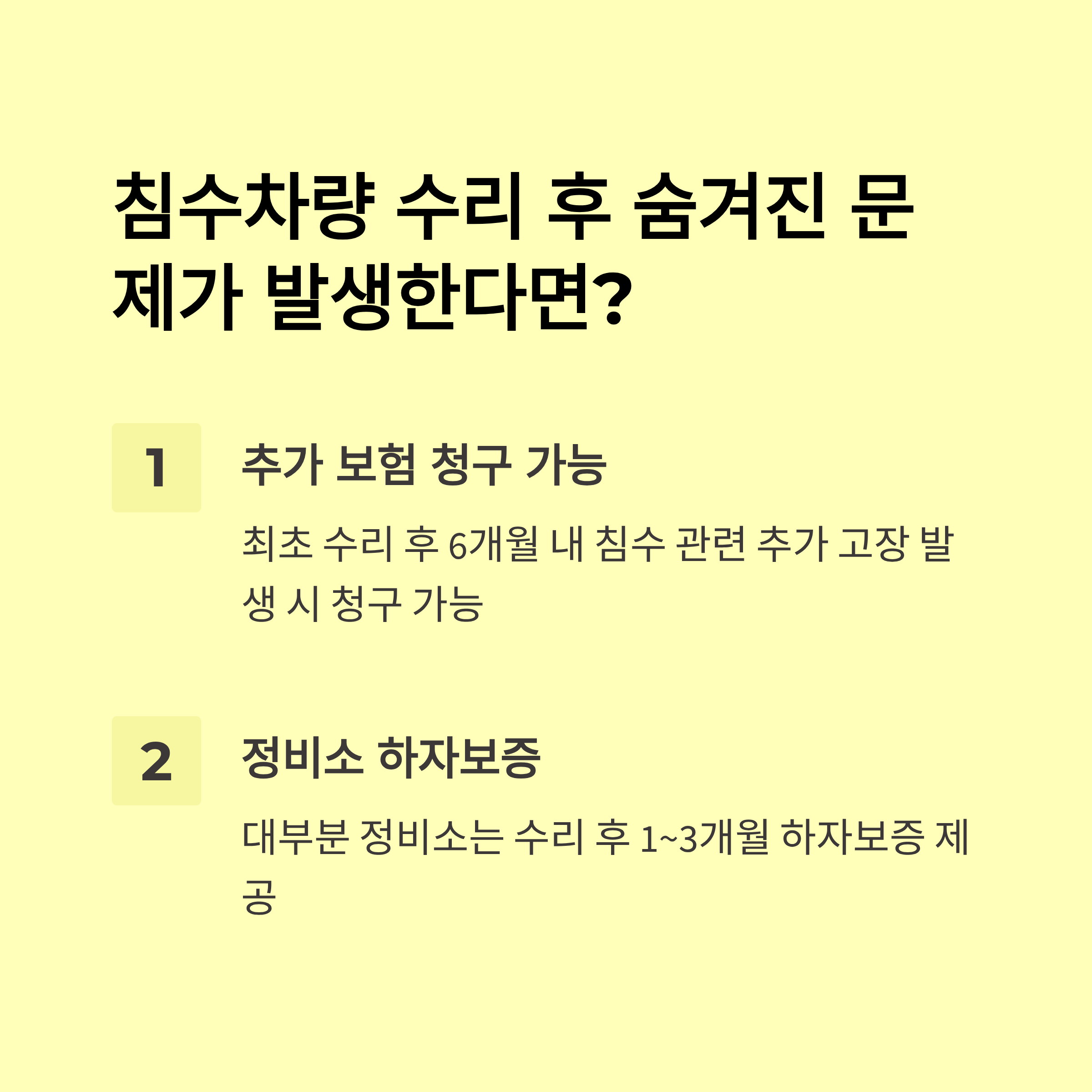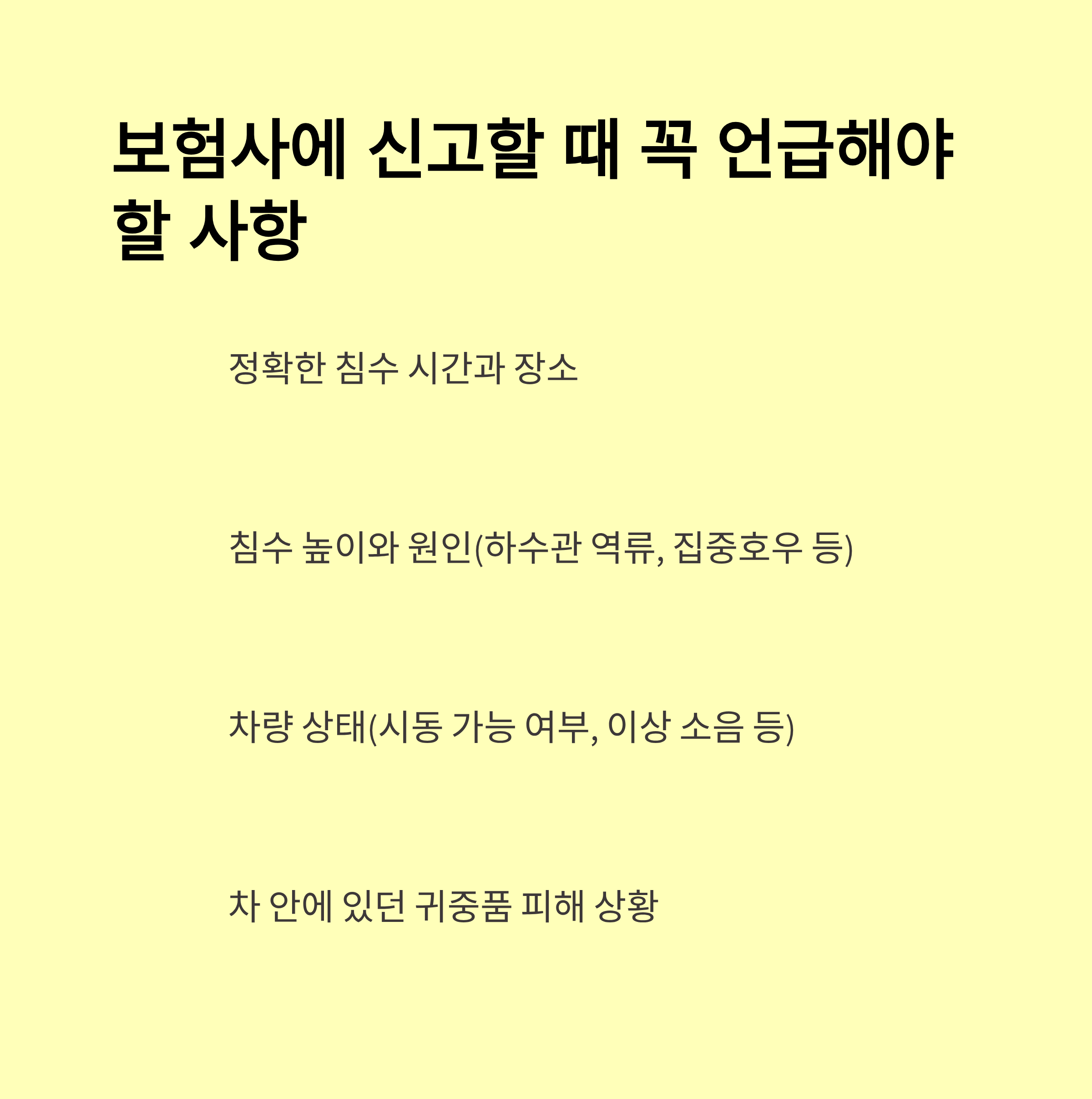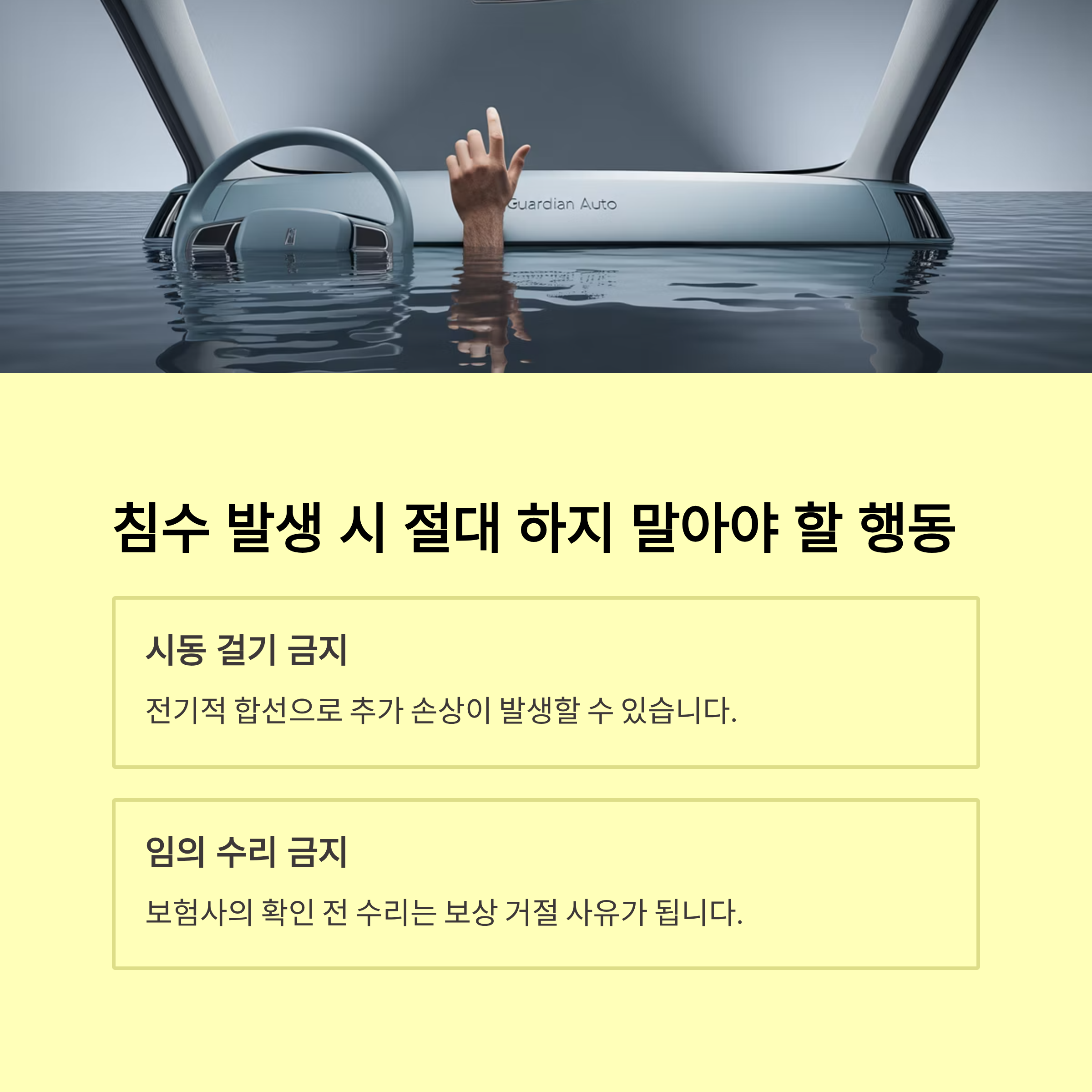 - 사고 및 침수 확인 → 즉시 보험사에 사고 접수