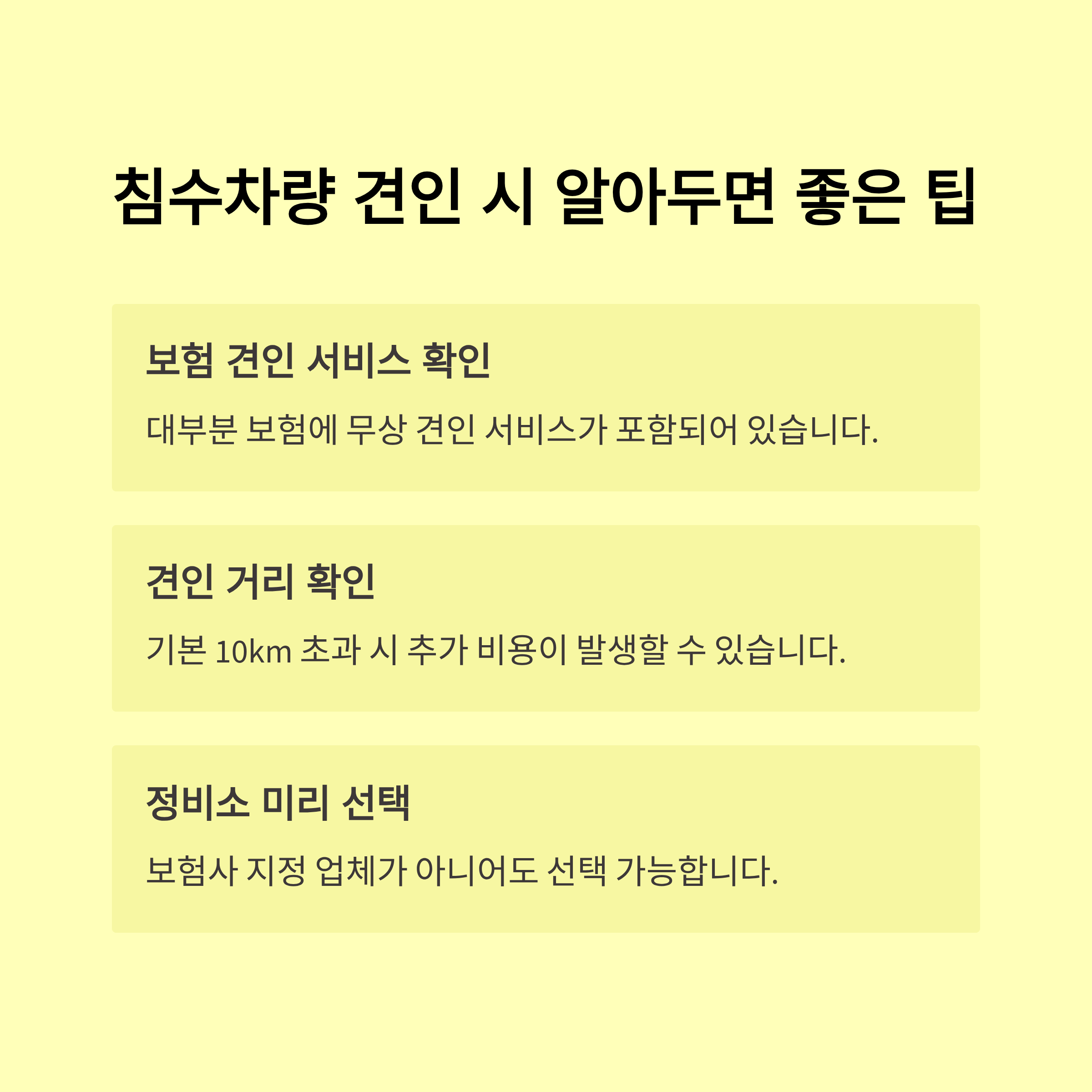 - 견인서비스: 보험 가입 시 제공되는 차량 견인 지원 서비스