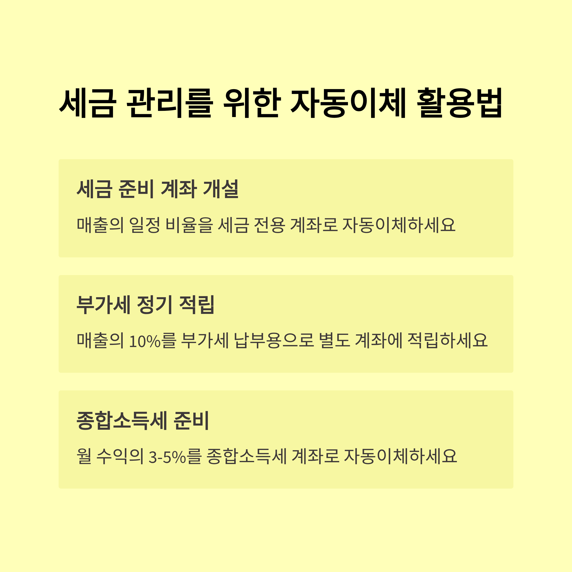 “국세·4대보험을 통합 자동이체로 설정하니 매번 납부 날짜를 기억할 필요가 없어졌어요. 계좌 잔액만 잘 챙기면 연체 없이 크레딧 혜택을 유지할 수 있어 마음이 편합니다.”