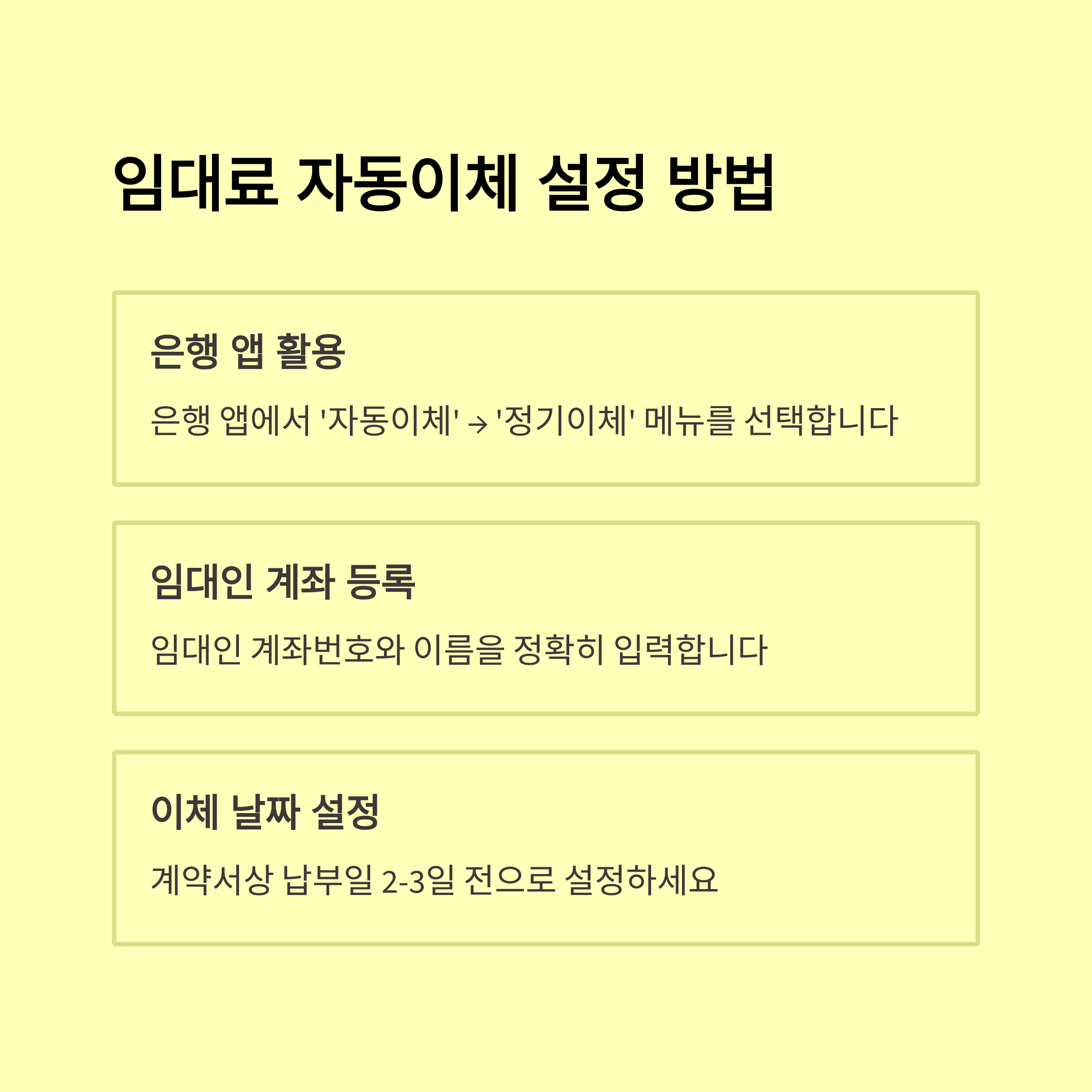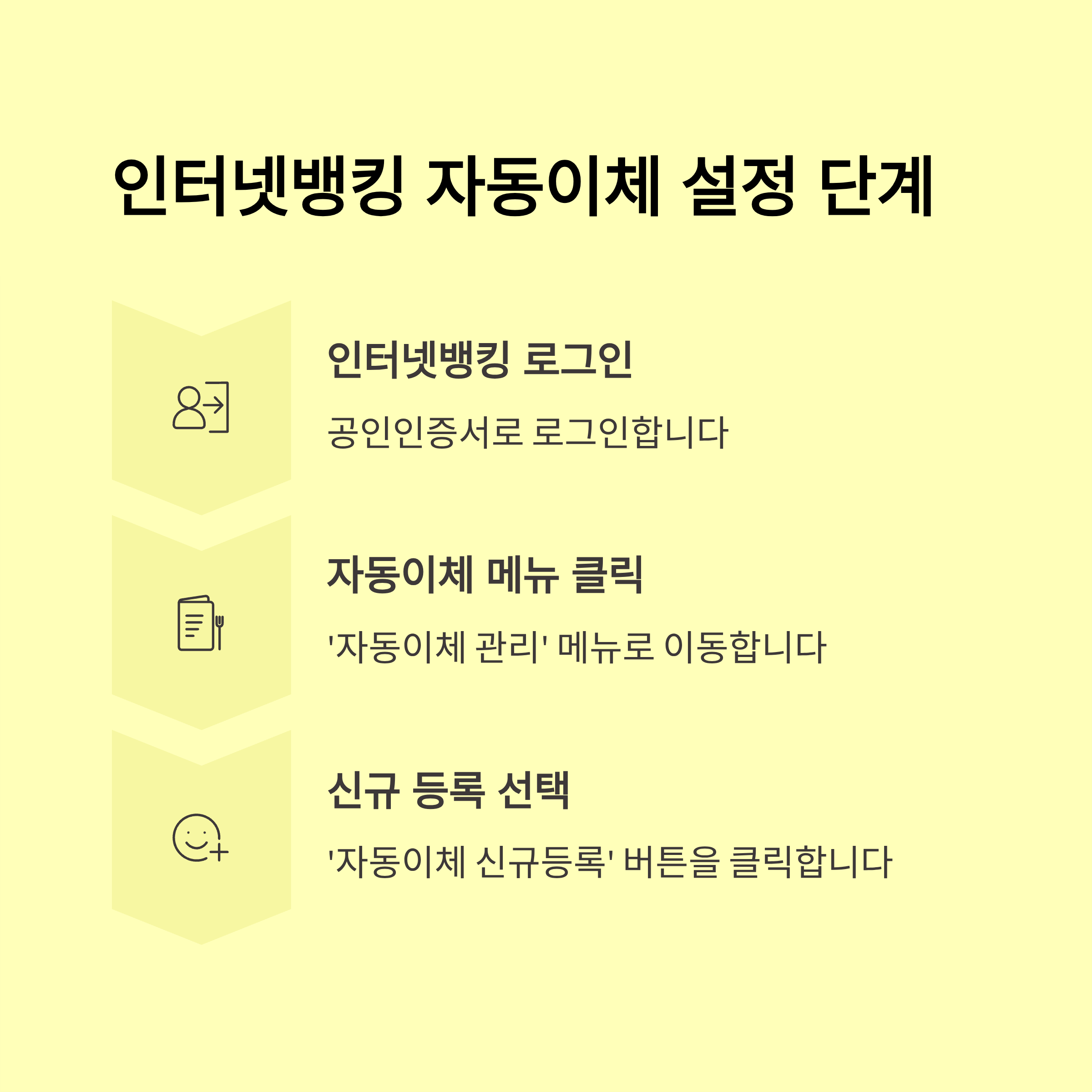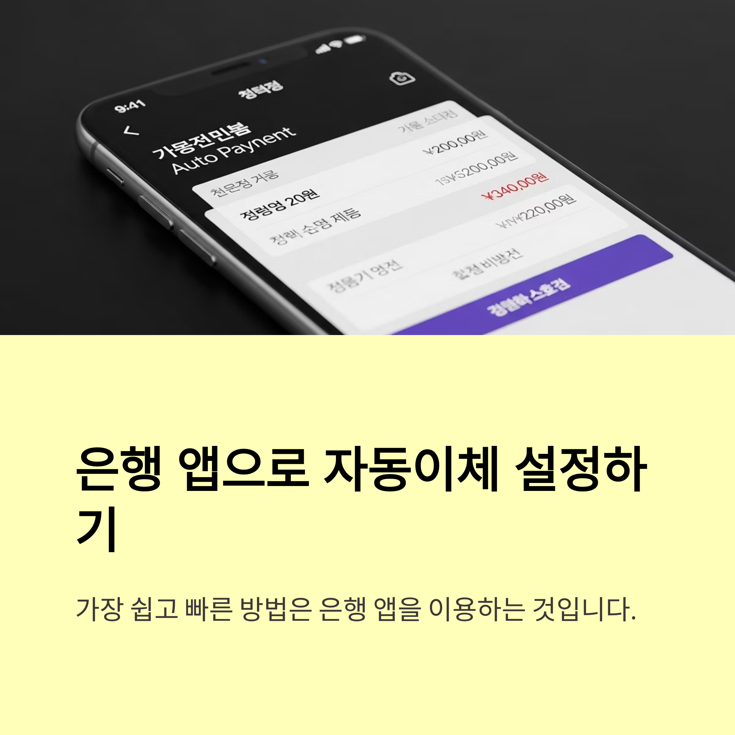 - 주거래 은행 앱 로그인 → ‘자동이체 등록’ 메뉴