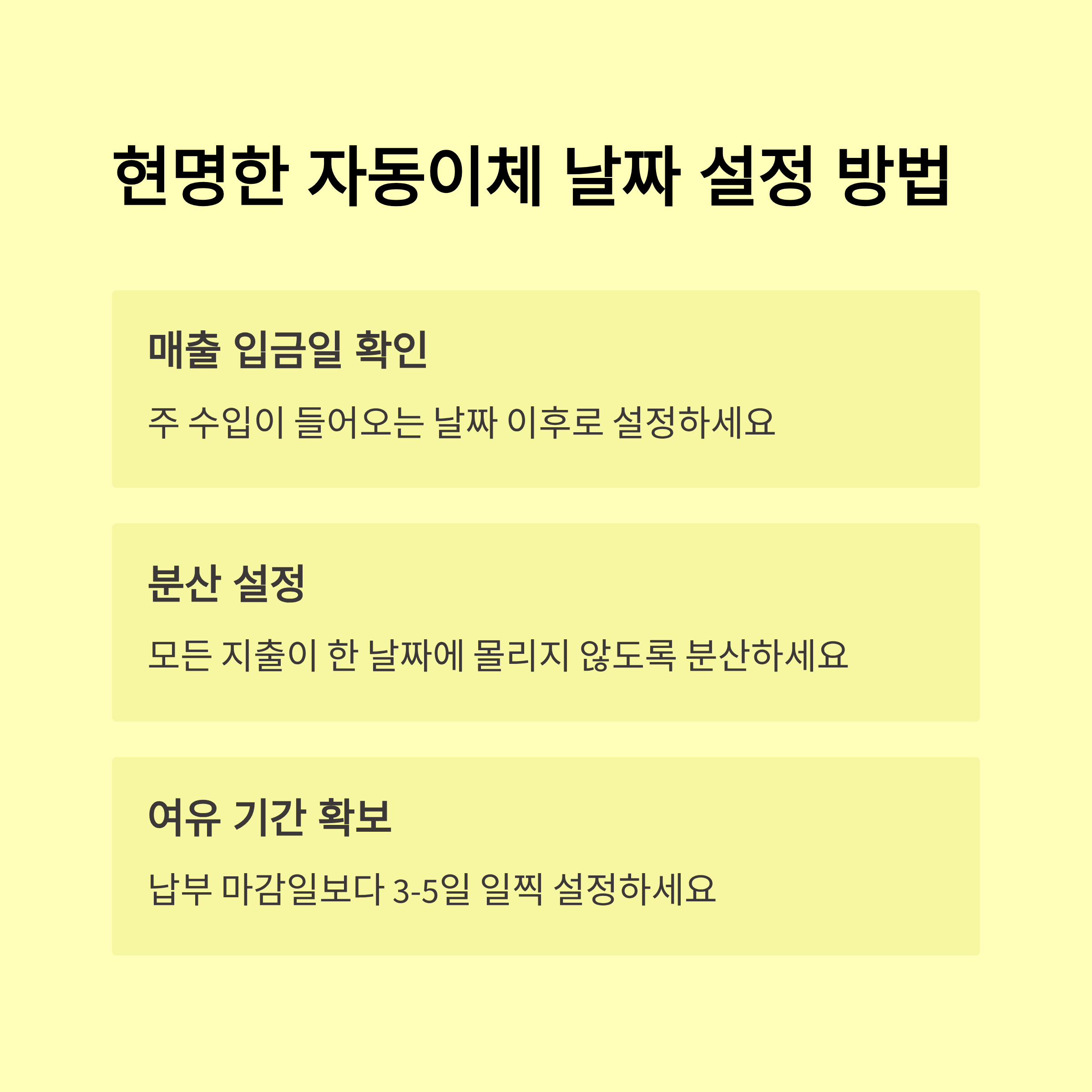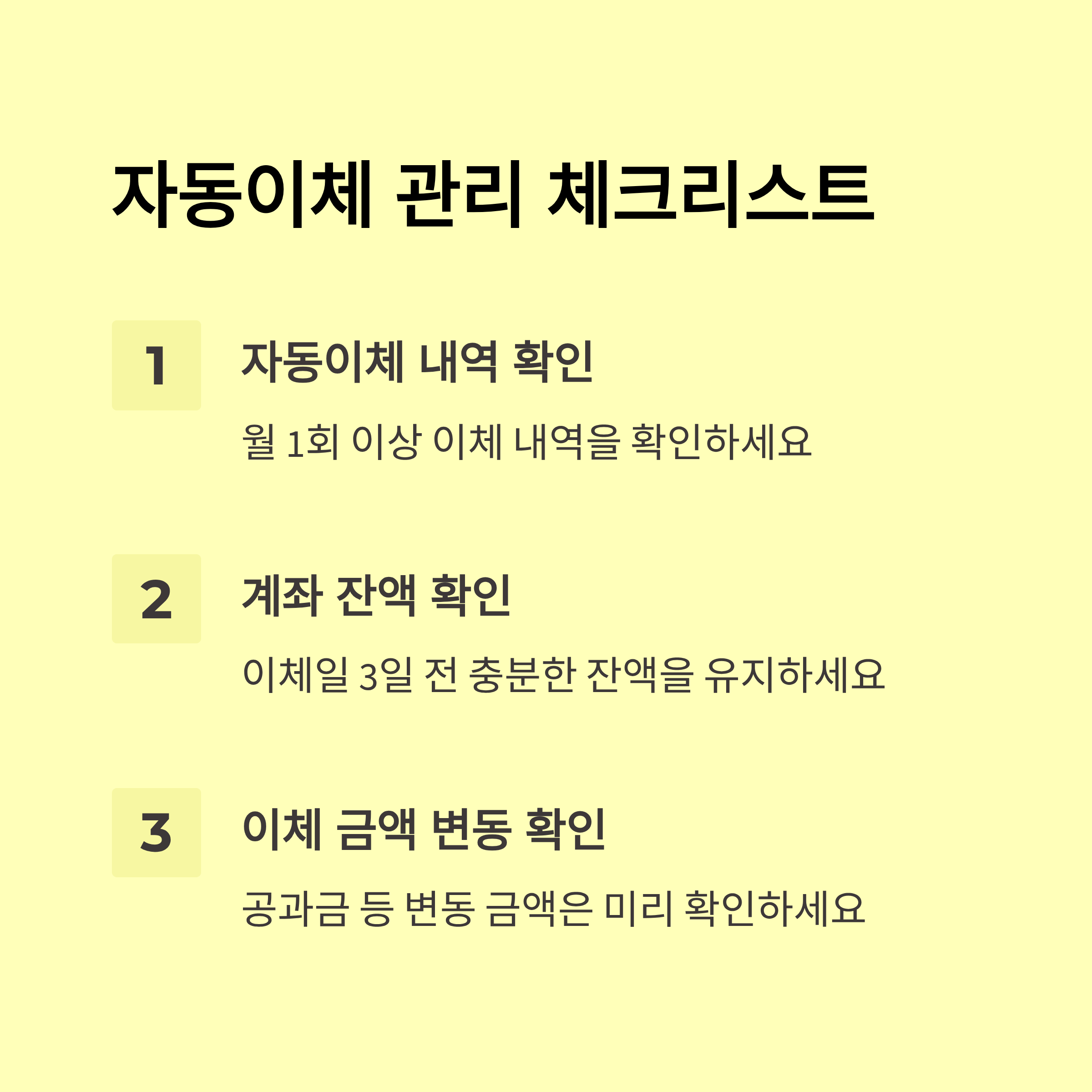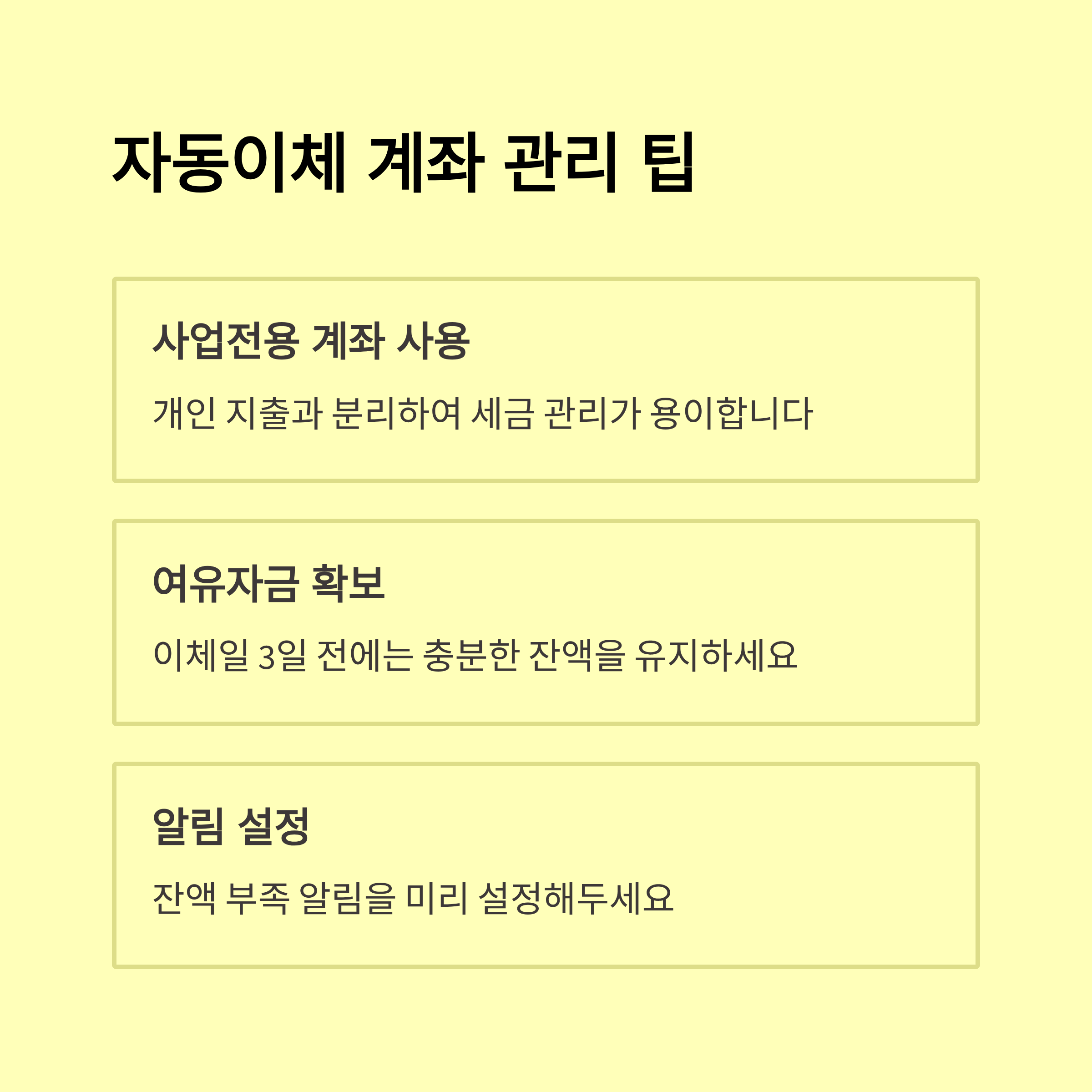 - 등록 후 첫 이체일 전 계좌 잔액 확보 필수