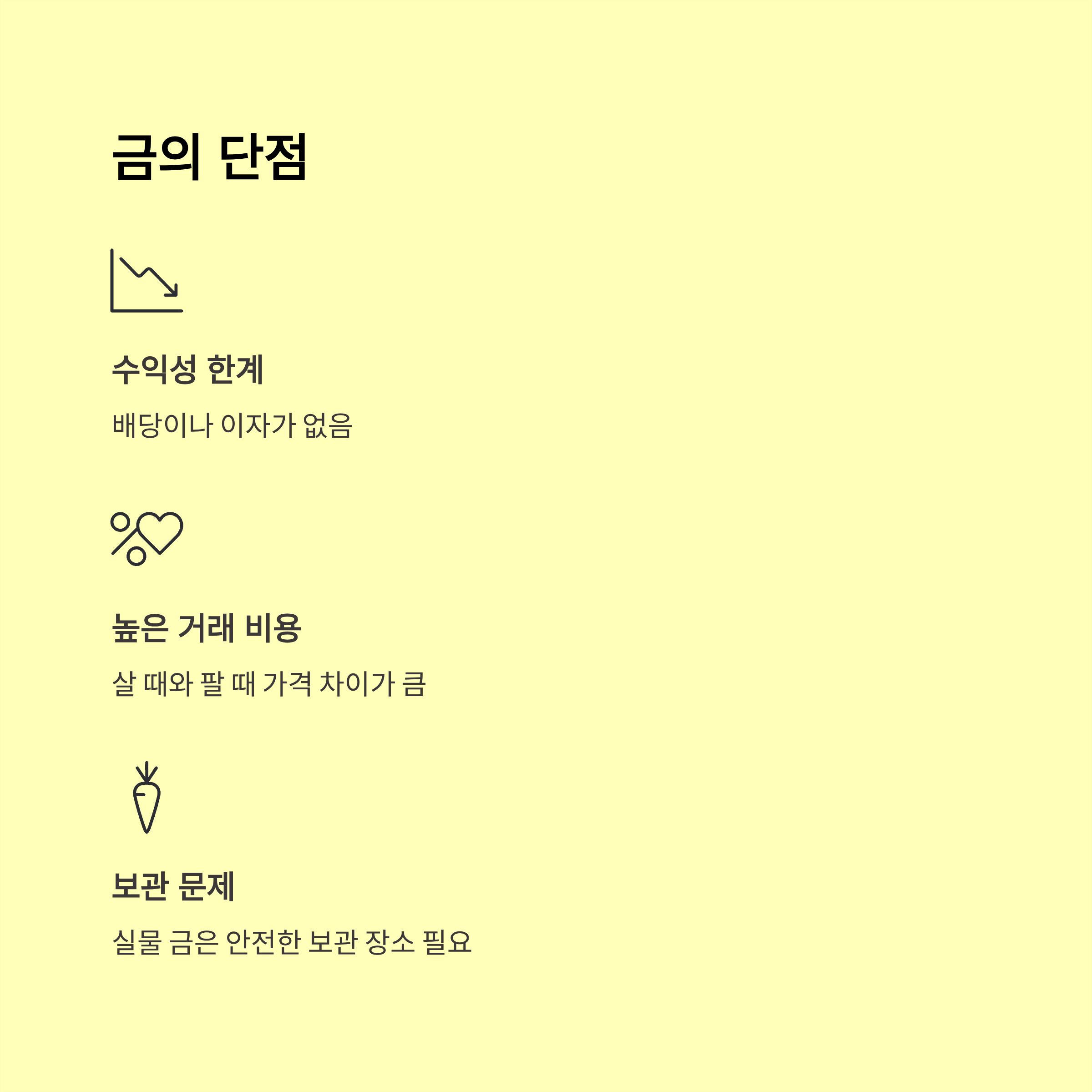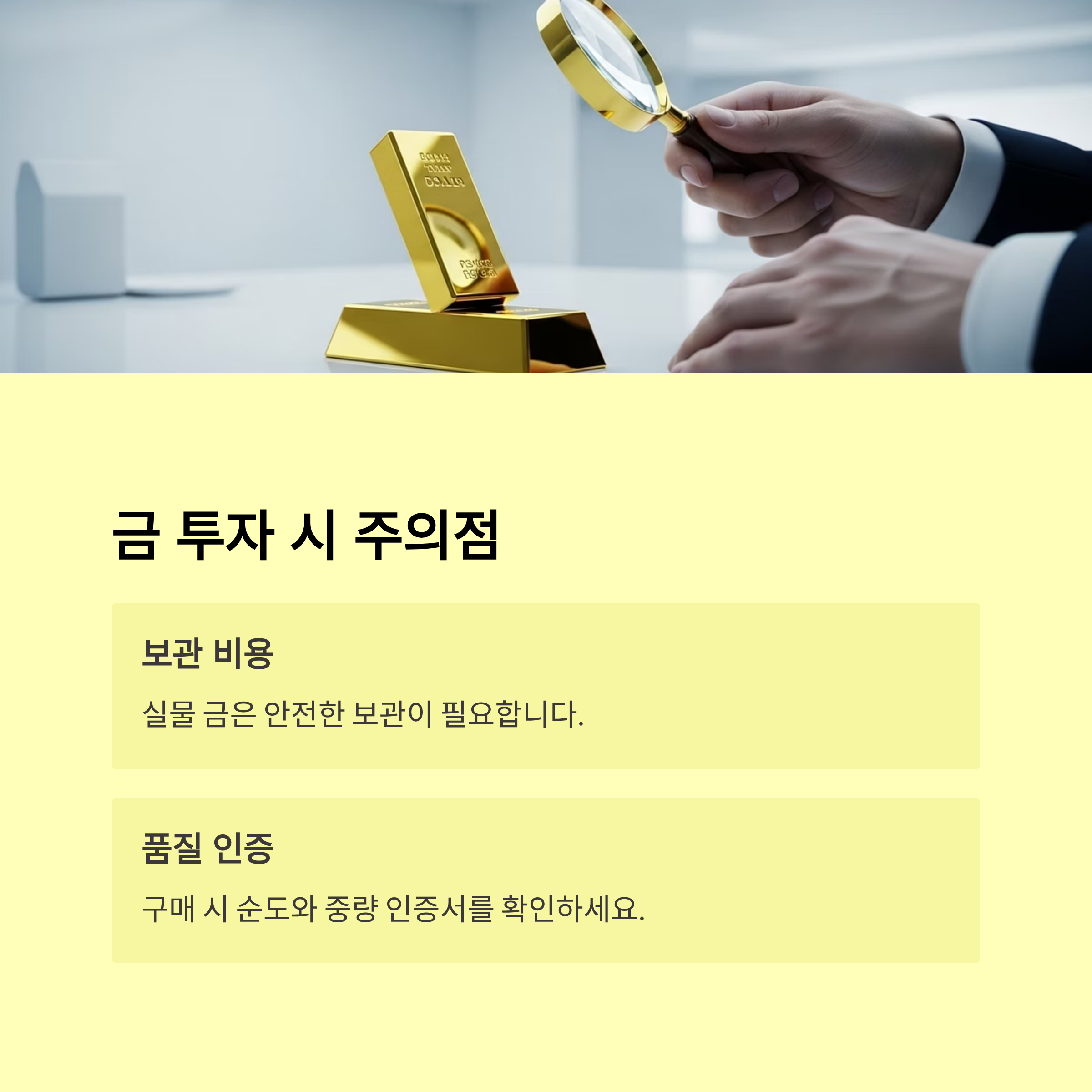 단기간 차익보다는 장기적인 자산 방어용으로 금을 바라보는 것이 현명하답니다. 환율이 불안정하거나 경제 위기가 닥칠 경우, 금은 여전히 안전한 자산이에요.