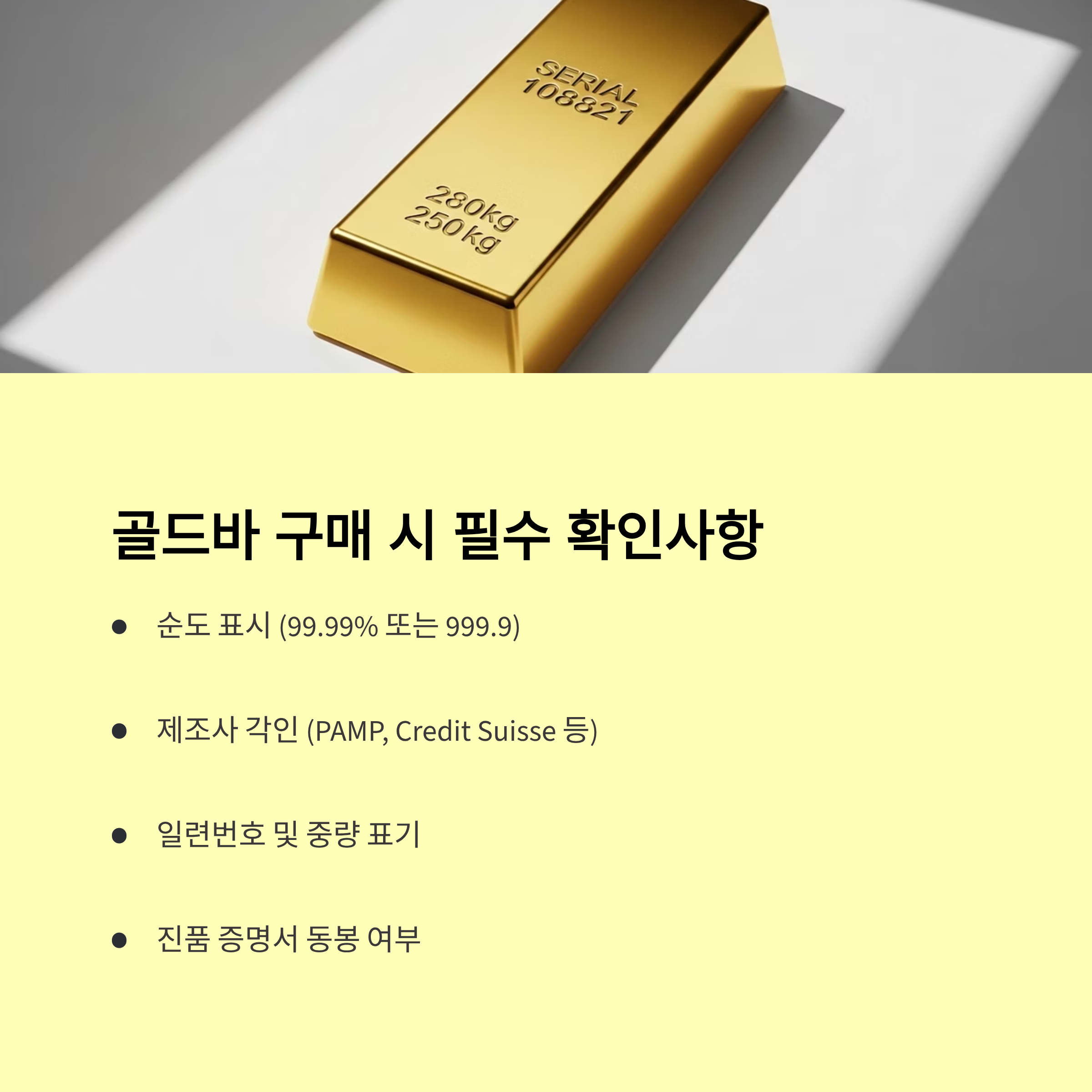 ✔️ 실물금은 정품 인증된 판매처에서만 구매해요. 특히 골드바는 한국금거래소, KRX 인증 제품인지 확인이 필요해요.