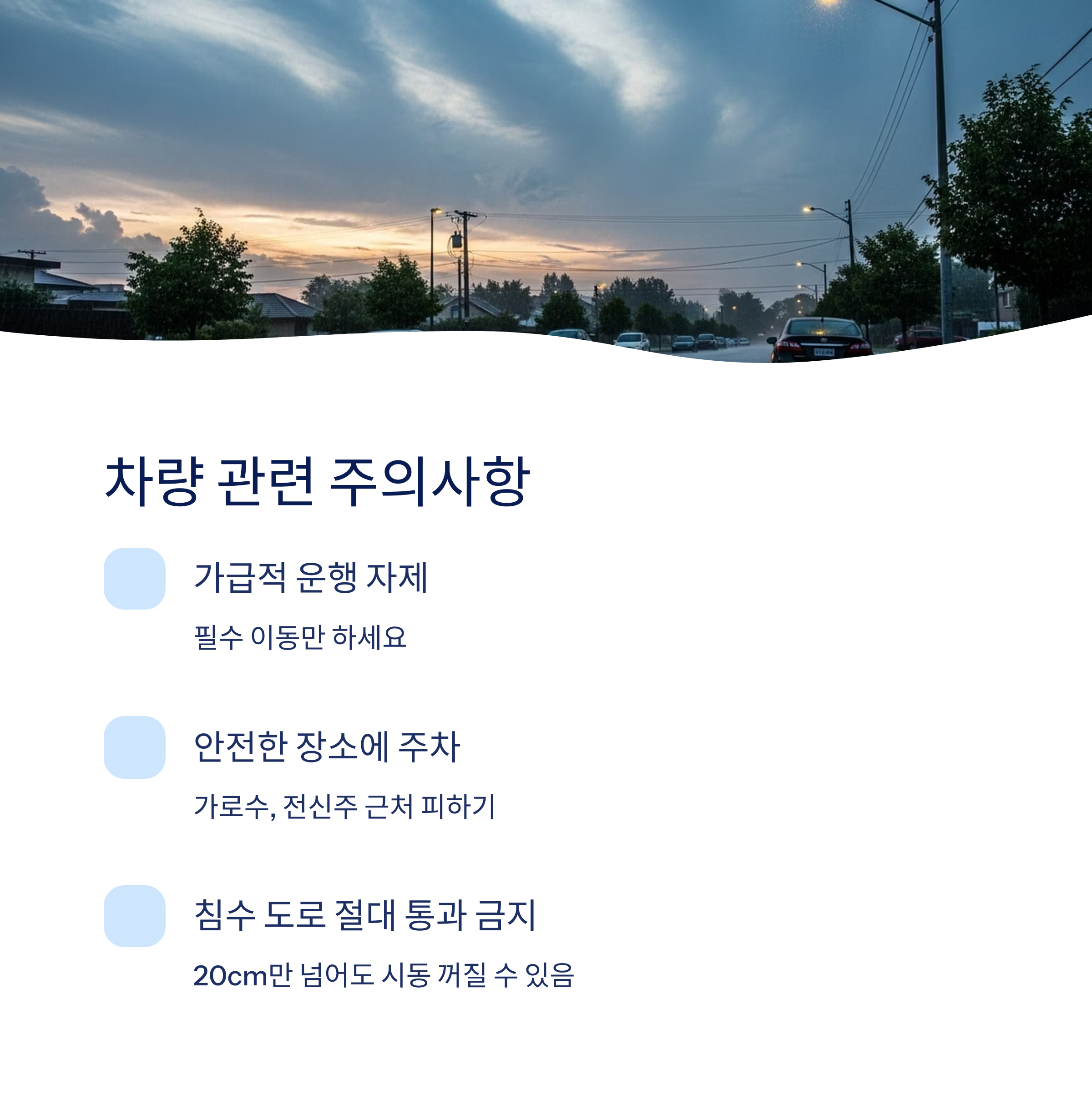 - 기상 경보와 특보를 수시로 확인하며 상황에 맞는 대처 계획을 수립하세요.