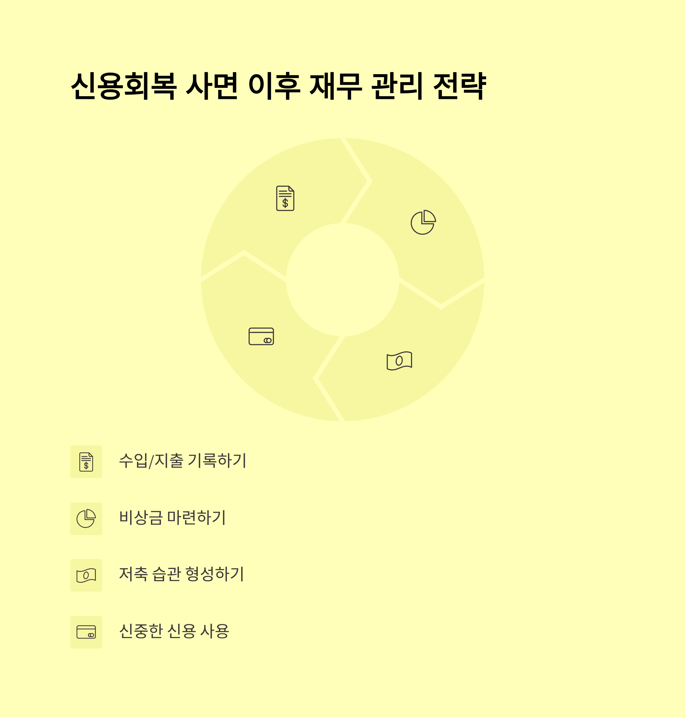 - 주요 기관: 서민금융진흥원, 신용회복위원회, 법원(개인회생/파산/면책), 금융기관 자체 회복제도