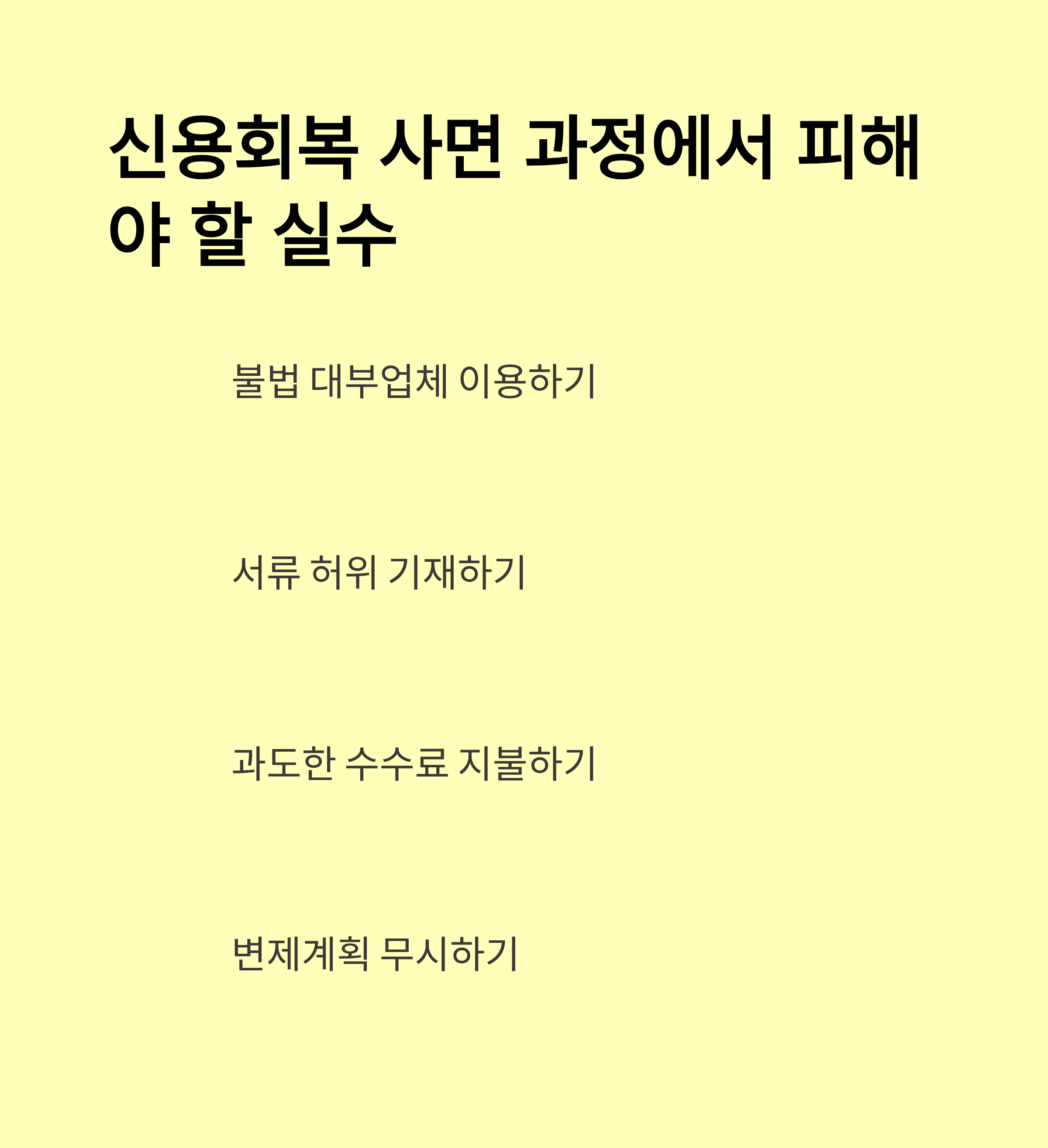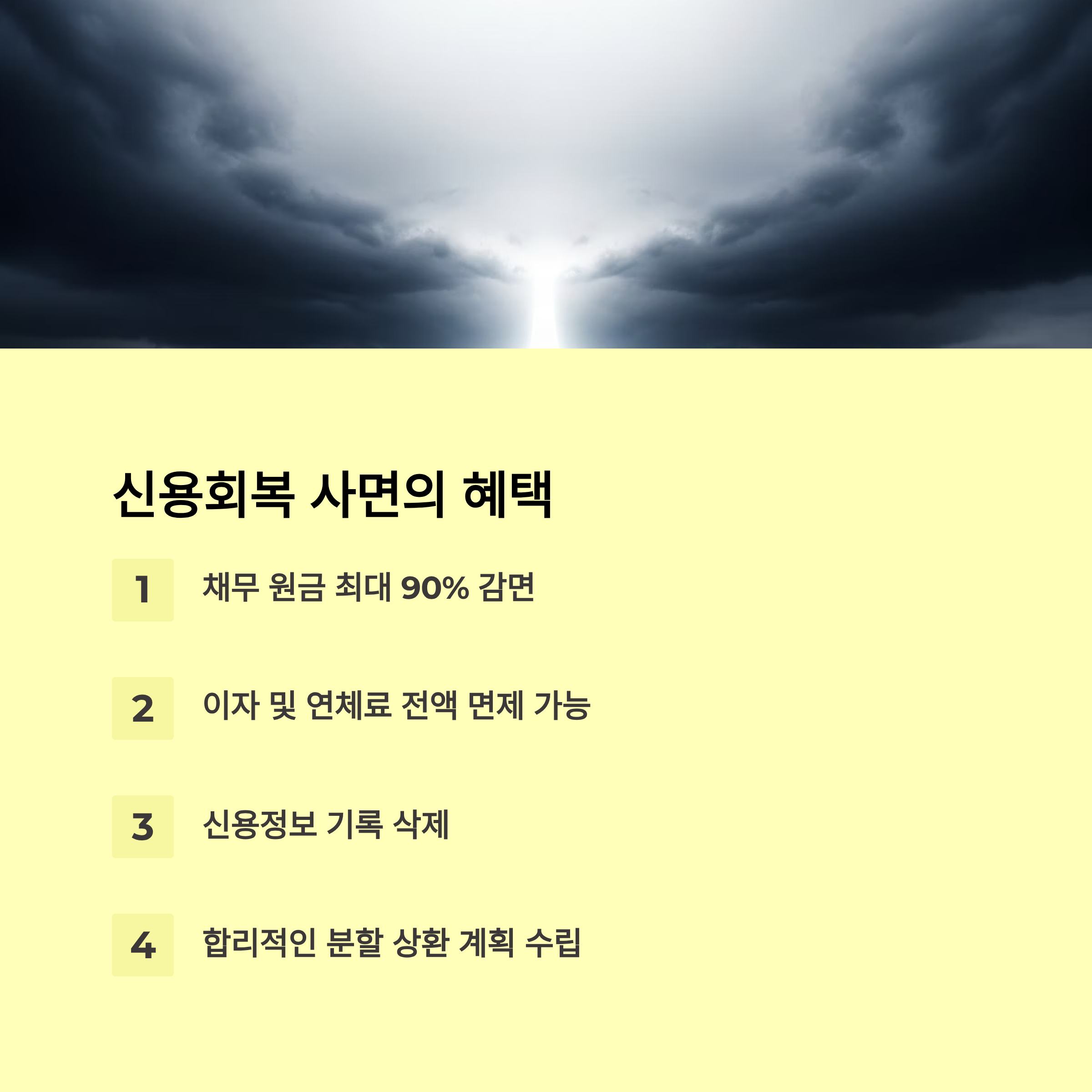 | 복구효과 | 기존 신용기록 삭제 혹은 대폭 감면 | 상환·분할변제 후 정상 복구 |